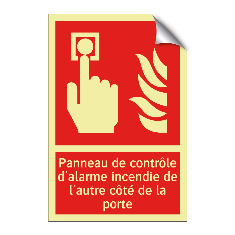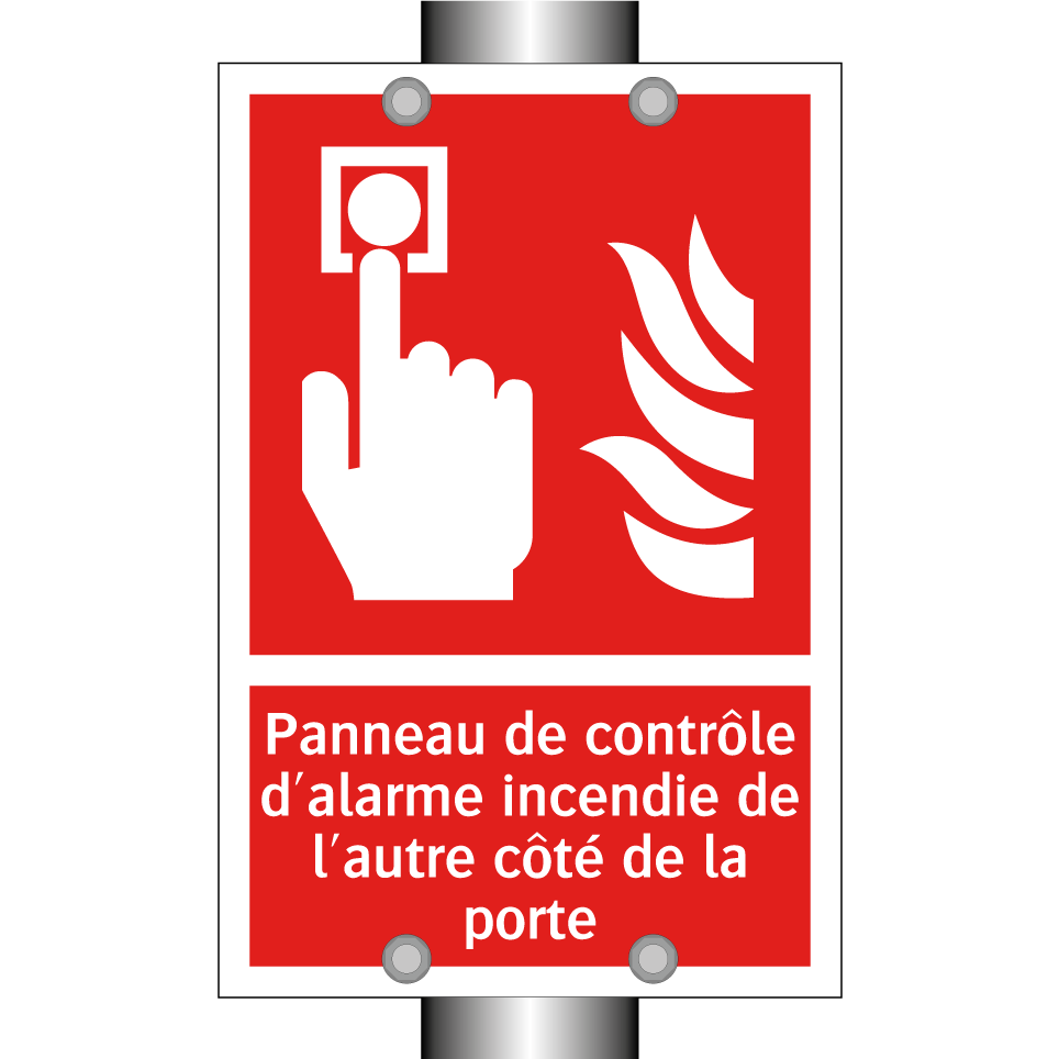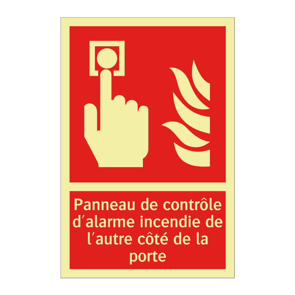 Panneau incendie avec le texte Panneau de contrôle d'alarme incendie de l'autre côté de la porte et une symbolique claire
