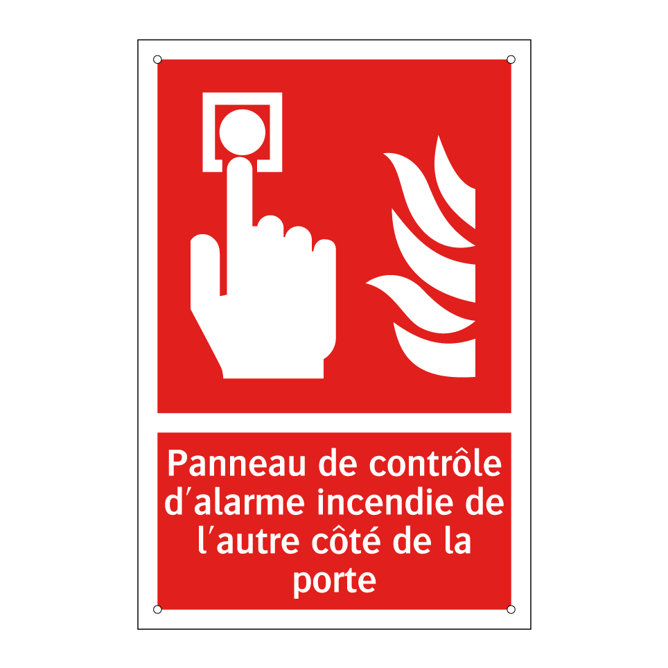 Cette signalisation incendie est idéale pour indiquer l'emplacement du panneau de contrôle d'alarme incendie, situé de l'autre côté de la porte. Elle est essentielle pour garantir la sécurité dans les bâtiments publics, les bureaux, les usines et les complexes résidentiels. Grâce à sa couleur rouge vif et son texte blanc clair, elle est facilement repérable en cas d'urgence. Installez-la à proximité des portes d'accès pour une visibilité optimale et pour guider efficacement le personnel et les visiteurs vers le dispositif de sécurité incendie.