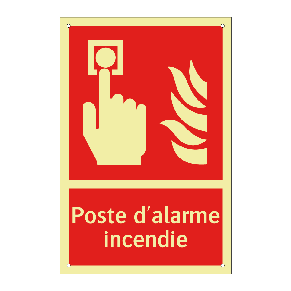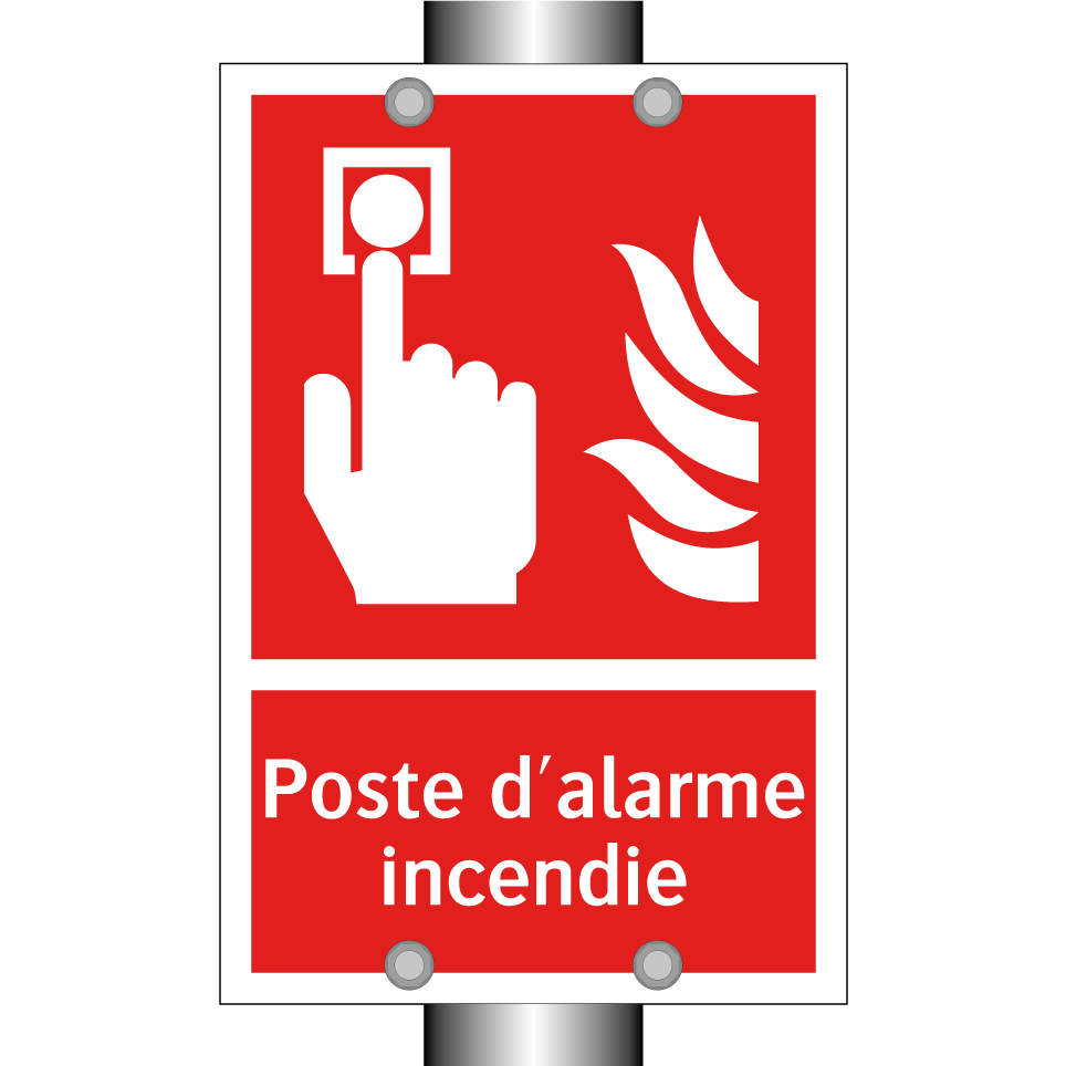 Panneau incendie avec le texte Poste d'alarme incendie et une symbolique claire