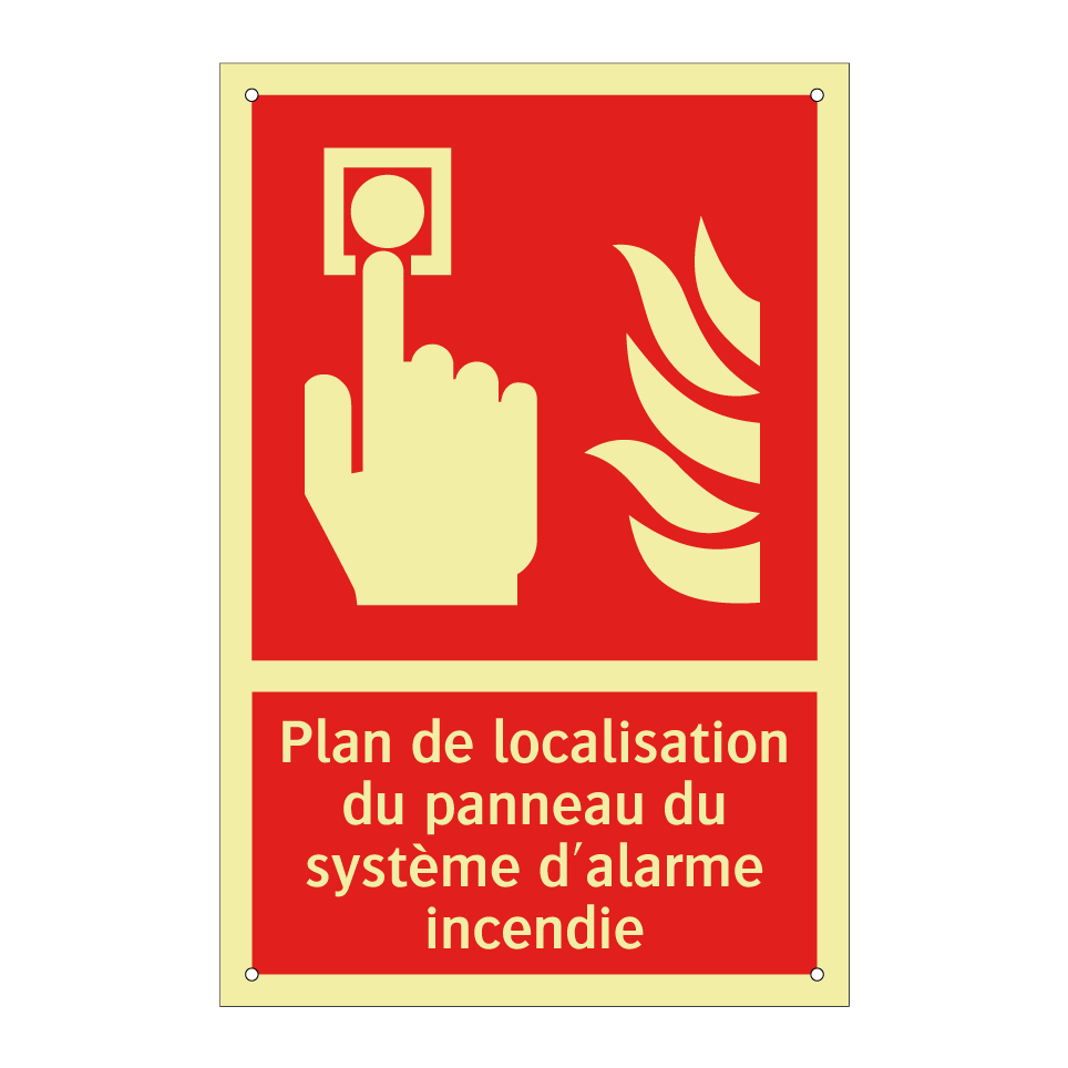 Panneau incendie avec le texte Plan de localisation du panneau du système d'alarme incendie et une symbolique claire