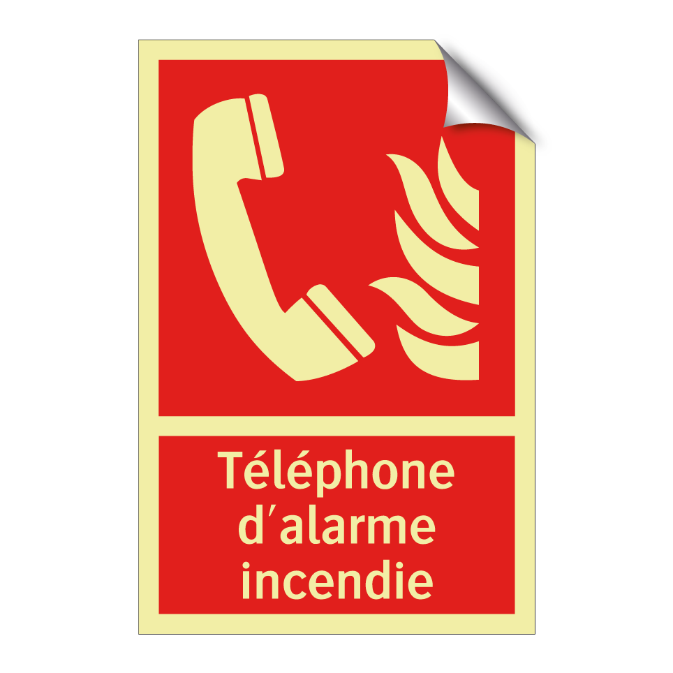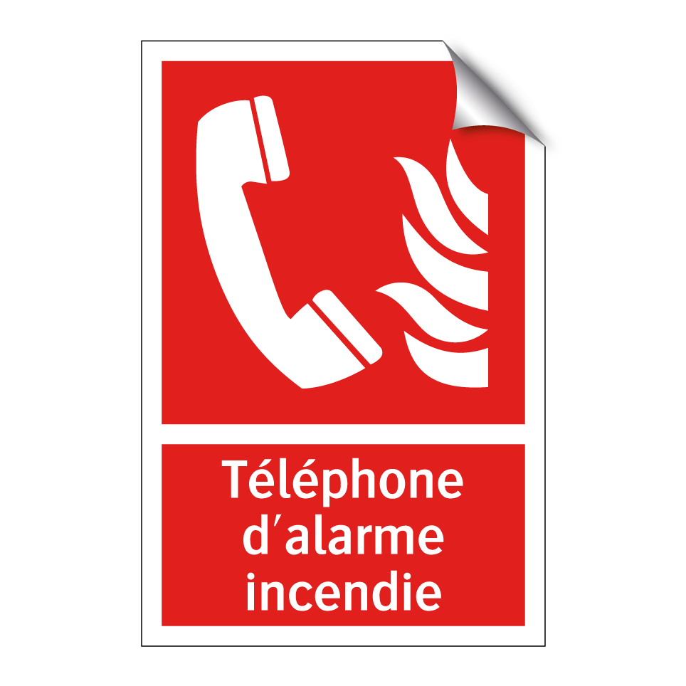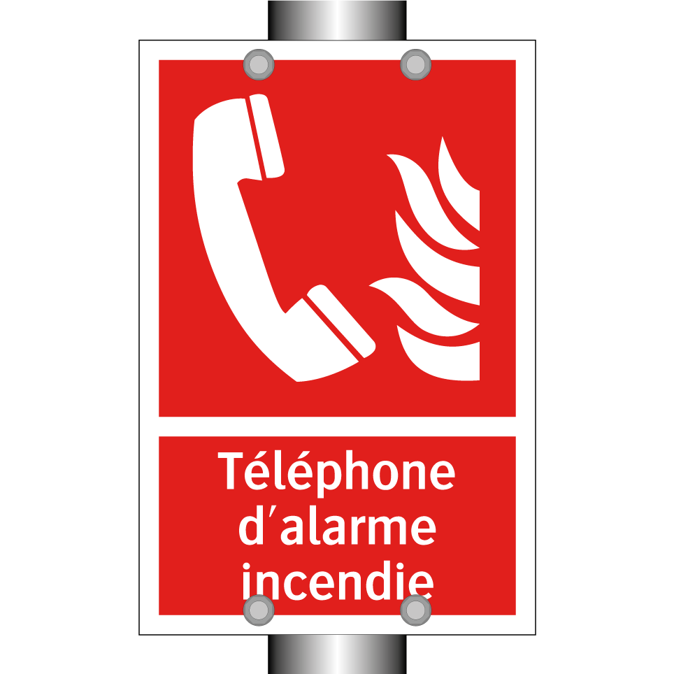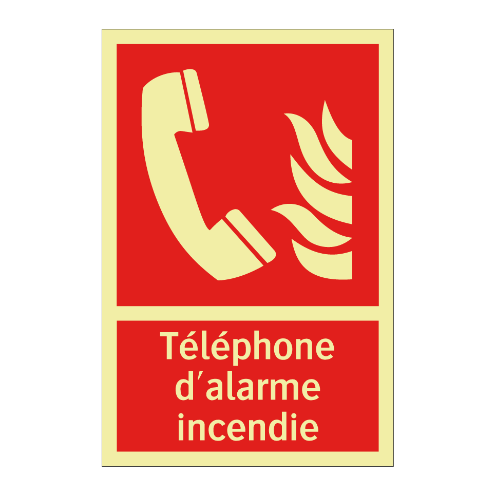 Panneau incendie avec le texte Téléphone d'alarme incendie et une symbolique claire