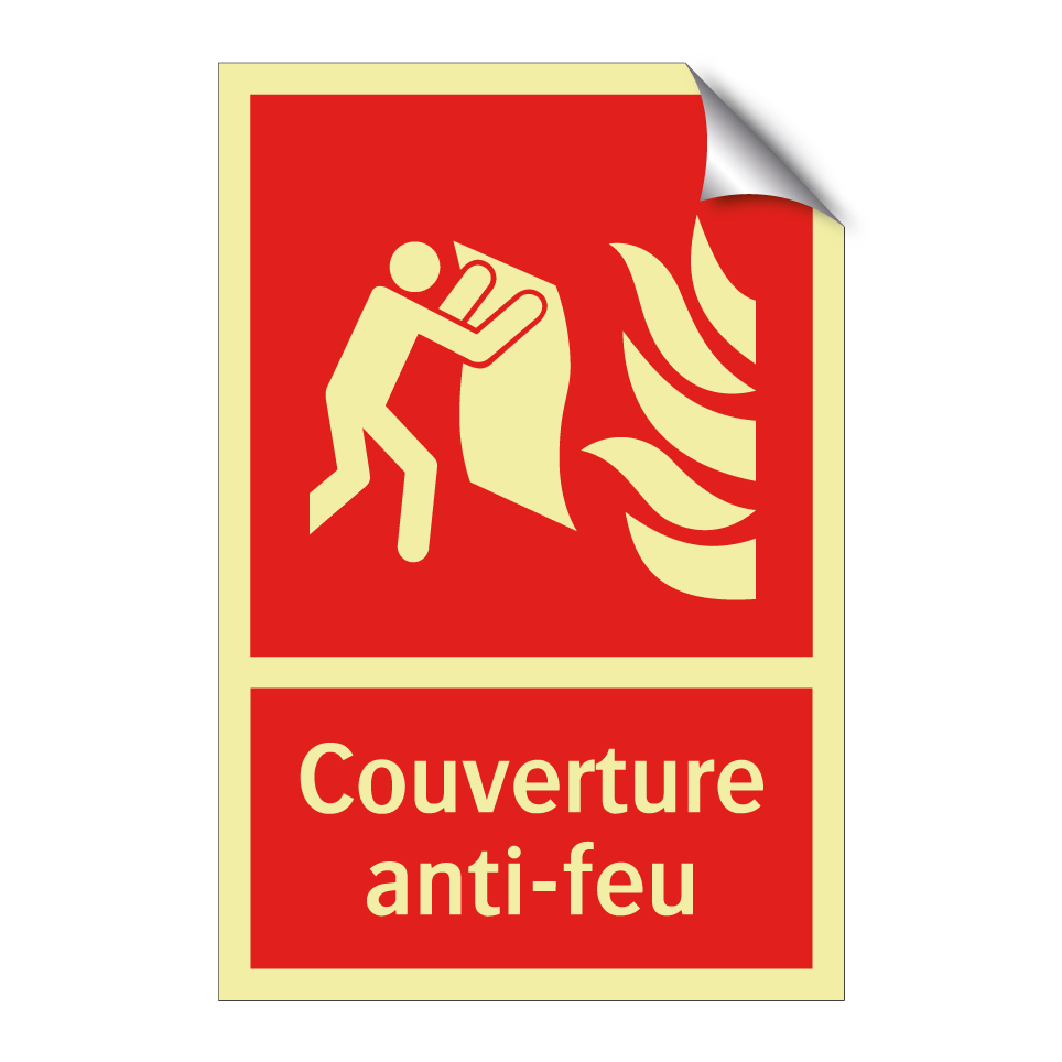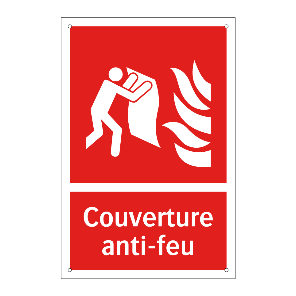 Panneau incendie avec le texte Couverture anti-feu et une symbolique claire