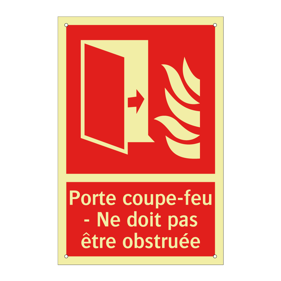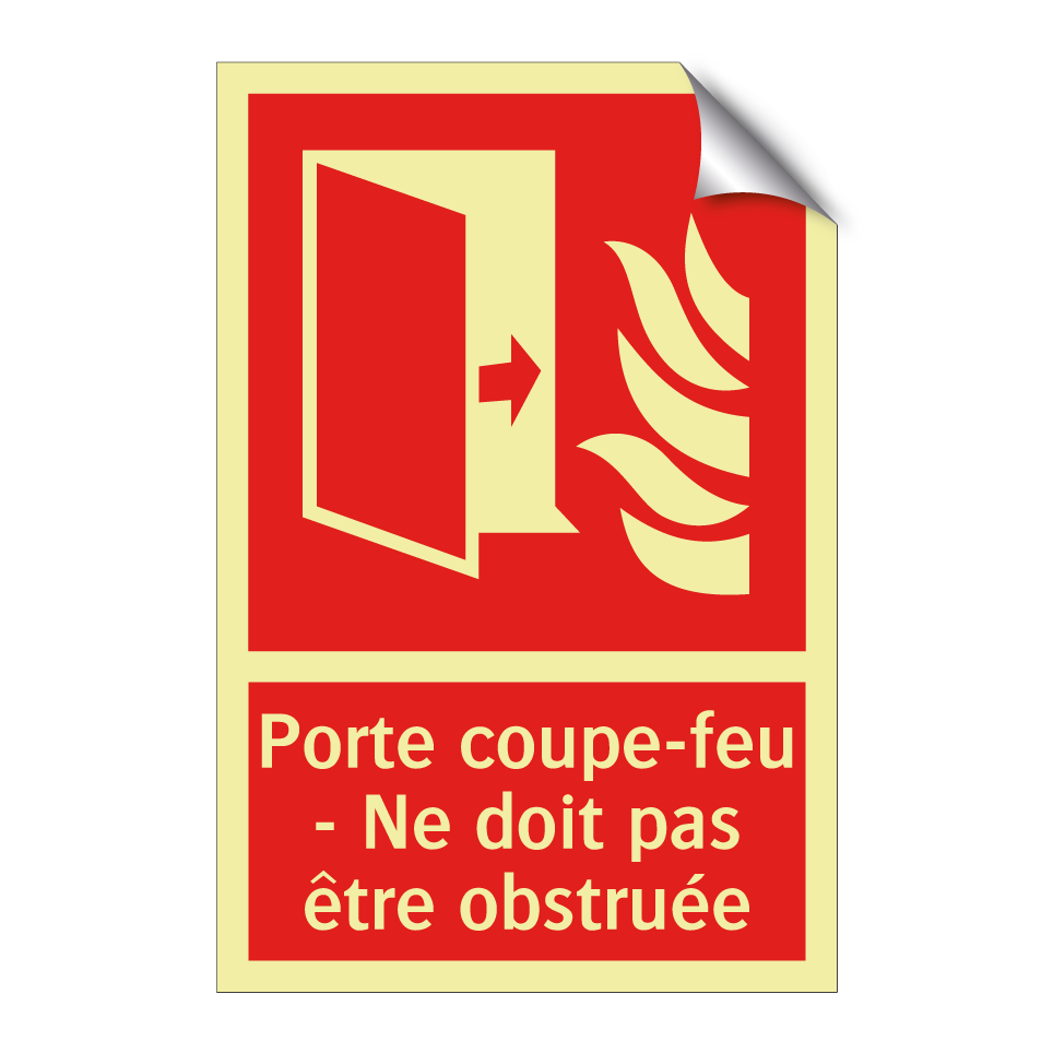 Panneau incendie avec le texte Porte coupe-feu - Ne doit pas être obstruée et une symbolique claire