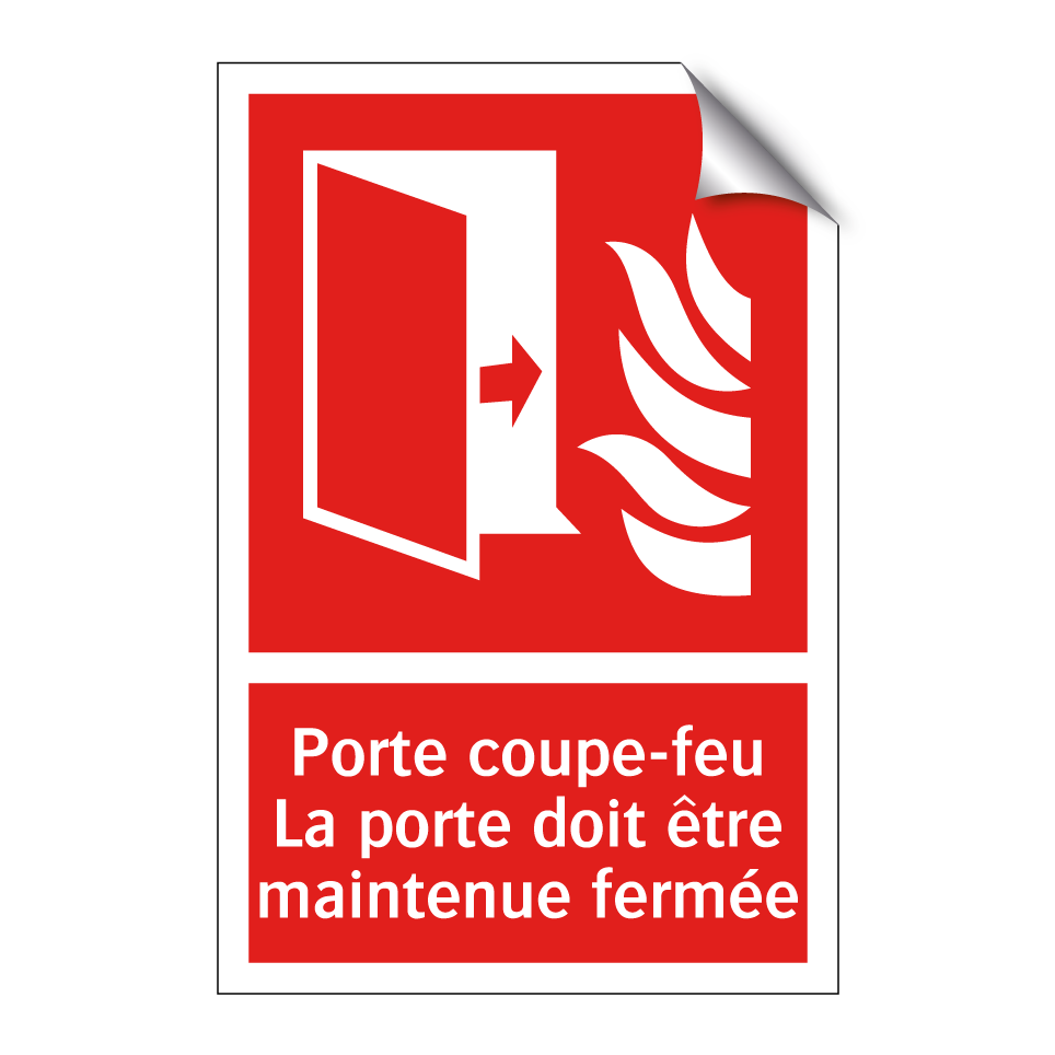 Panneau incendie avec le texte Porte coupe-feu La porte doit être maintenue fermée et une symbolique claire