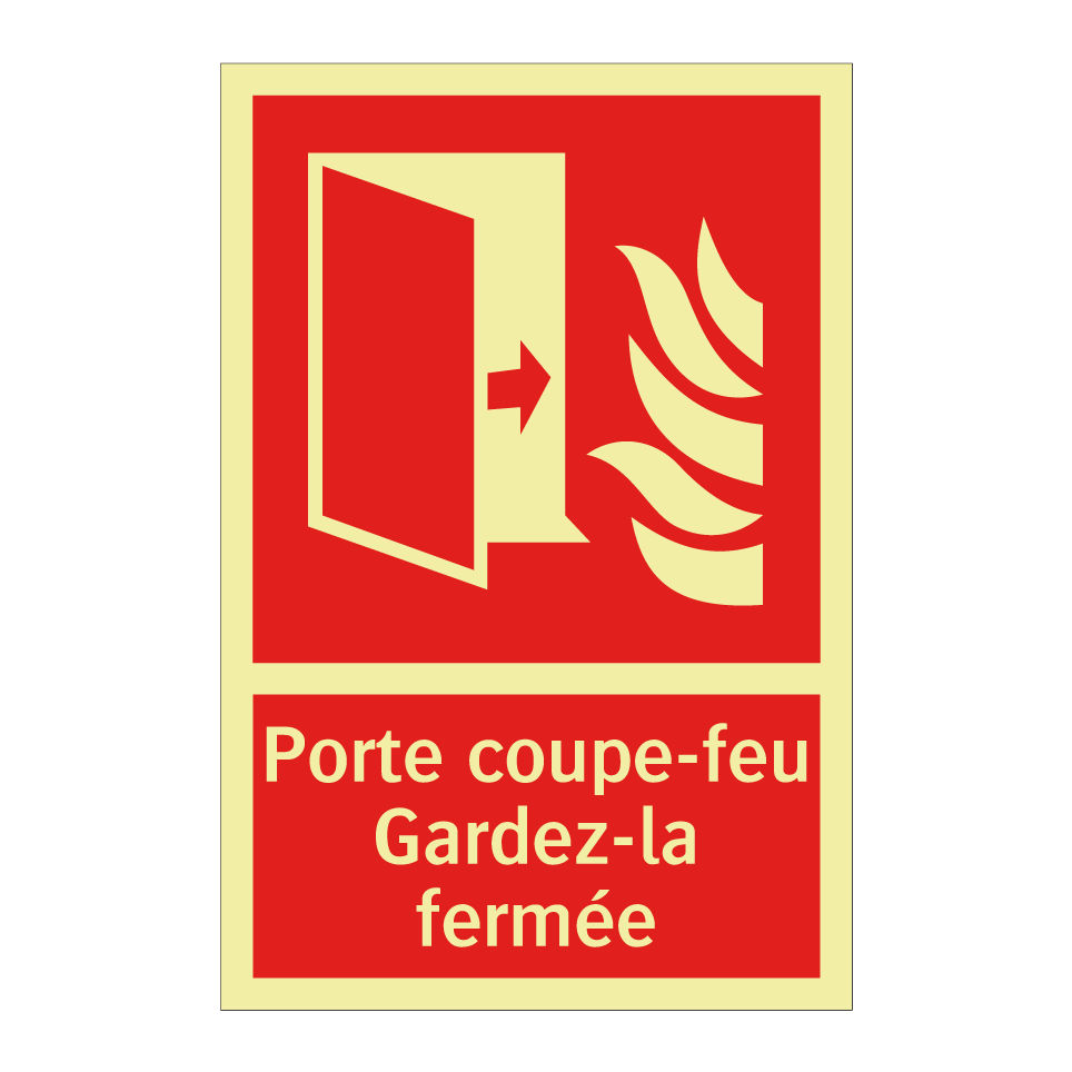 Panneau incendie avec le texte Porte coupe-feu Gardez-la fermée et une symbolique claire