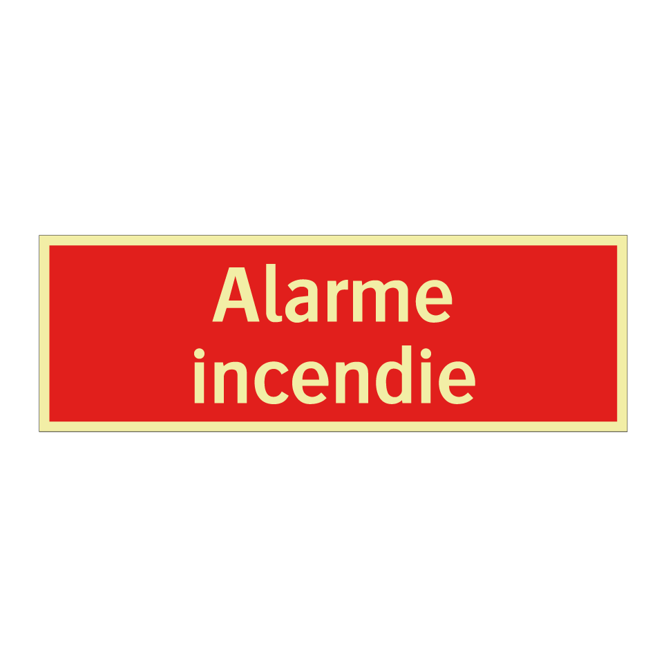 Panneau de signalisation incendie avec le texte Alarme incendie
