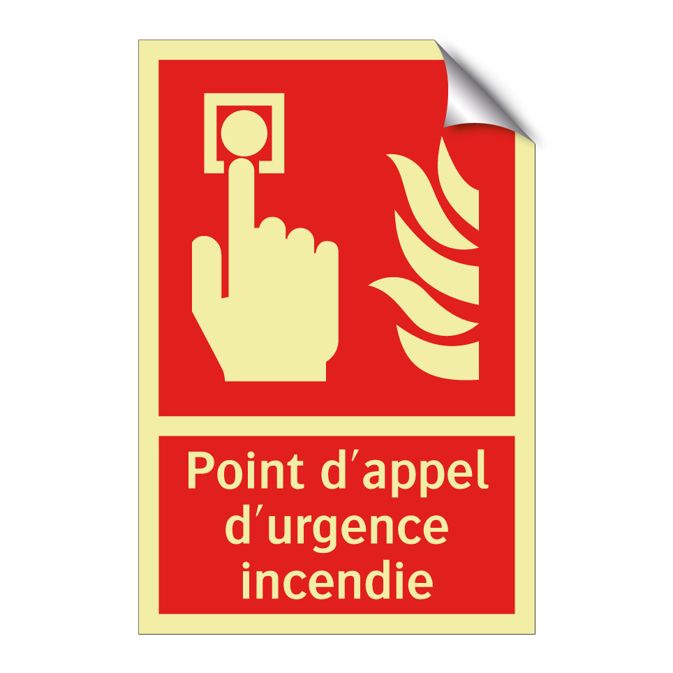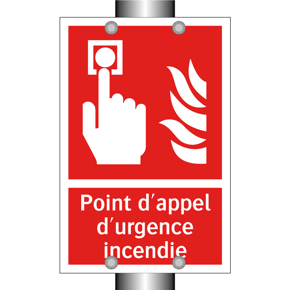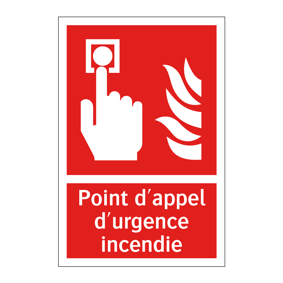Panneau incendie avec le texte Point d'appel d'urgence incendie et une symbolique claire