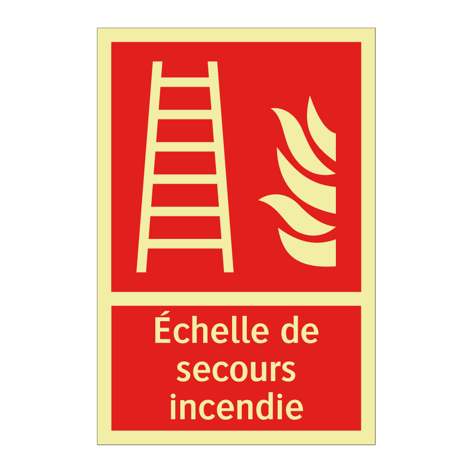 Panneau incendie avec le texte Échelle de secours incendie et une symbolique claire
