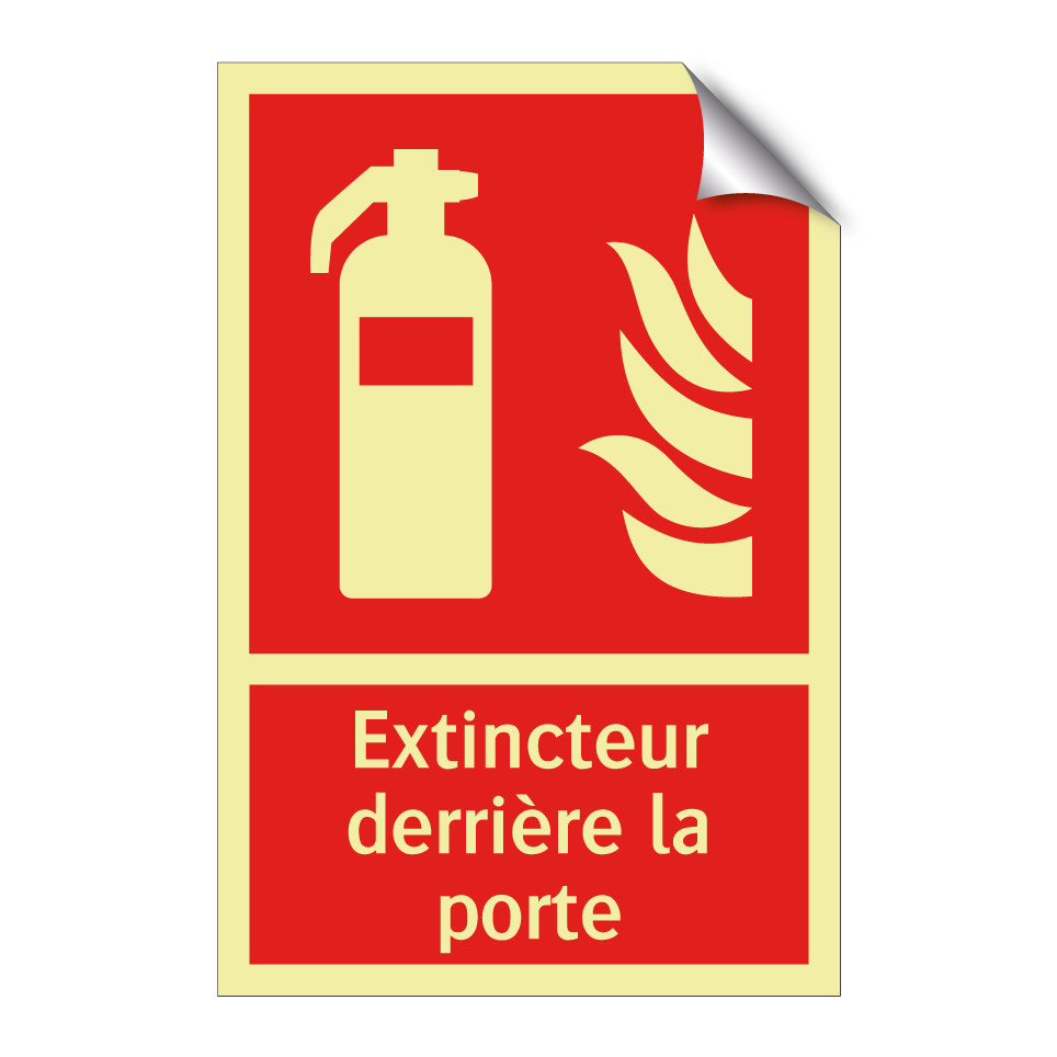 Panneau incendie avec le texte Extincteur derrière la porte et une symbolique claire