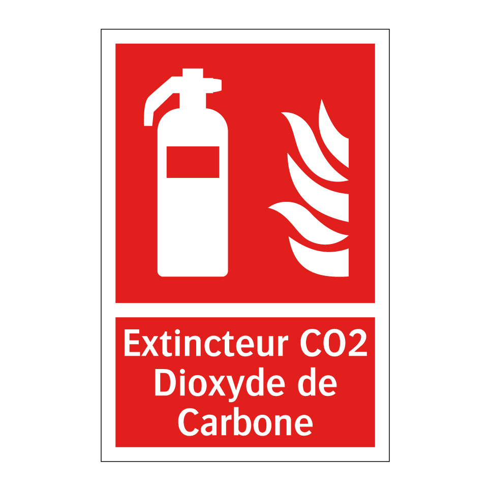 Panneau incendie avec le texte Extincteur CO2 Dioxyde de Carbone et une symbolique claire