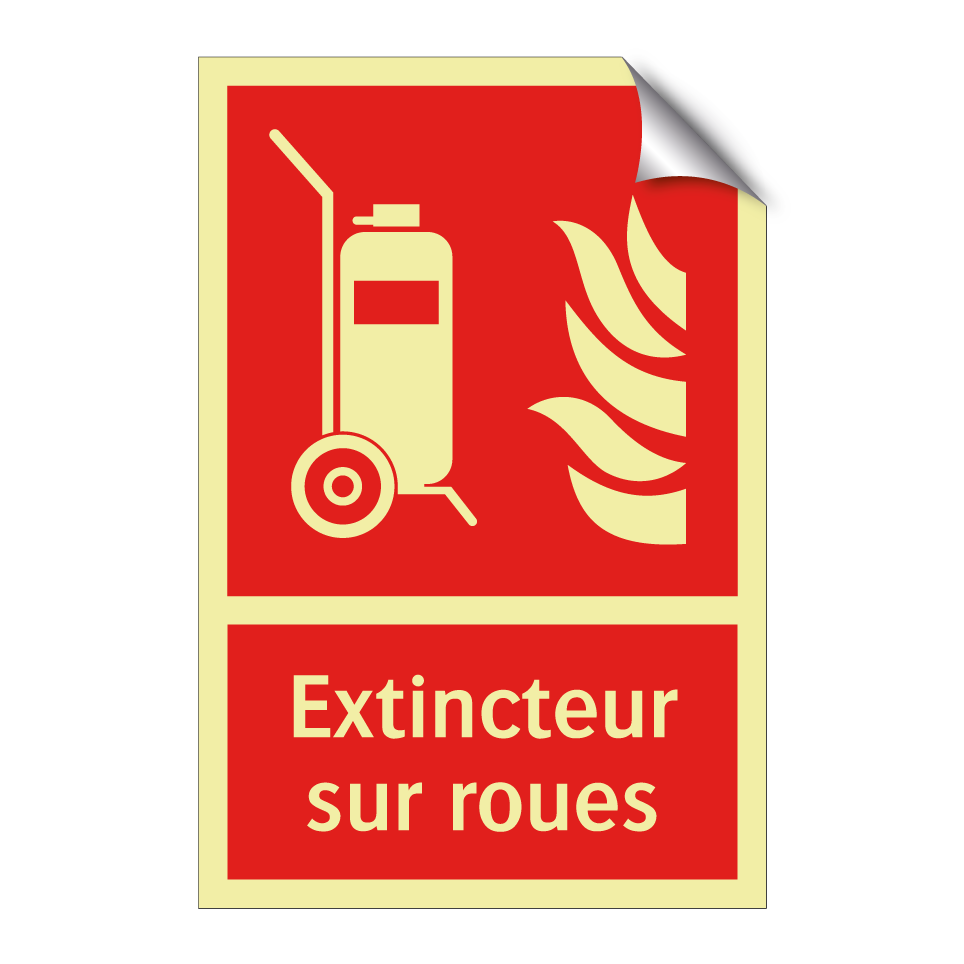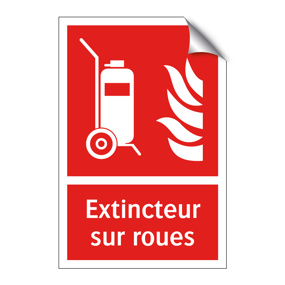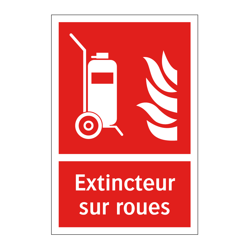 Panneau incendie avec le texte Extincteur sur roues et une symbolique claire
