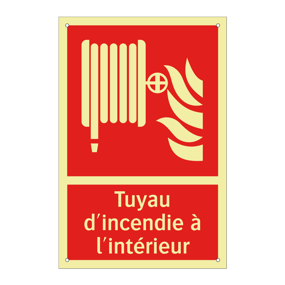 Panneau incendie avec le texte Tuyau d'incendie à l'intérieur et une symbolique claire