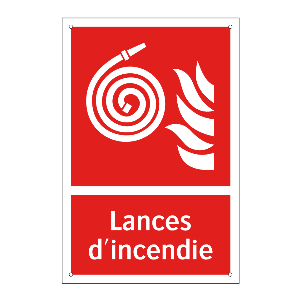 Panneau incendie avec le texte Lances d'incendie et une symbolique claire