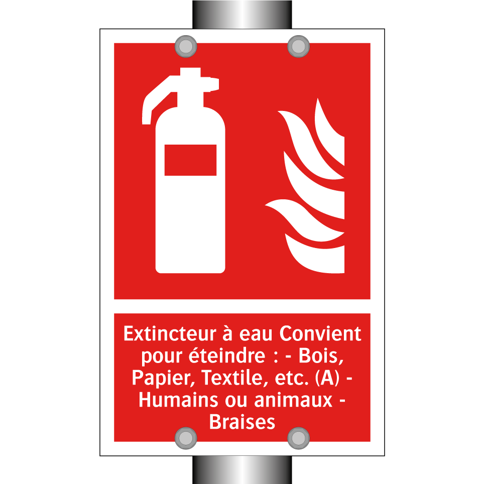 Cette pancarte de sécurité incendie est idéale pour être placée dans des environnements où la prévention des incendies est cruciale, tels que les bureaux, les écoles, les hôtels et les espaces publics. Elle sert à indiquer l'emplacement d'un extincteur à eau, efficace pour éteindre les feux de classe A, y compris ceux impliquant du bois, du papier et des textiles. Grâce à son design clair avec un fond rouge et un texte blanc, elle est facilement repérable en cas d'urgence. Installez-la à proximité des extincteurs pour garantir une visibilité optimale et assurer la sécurité des personnes et des animaux.