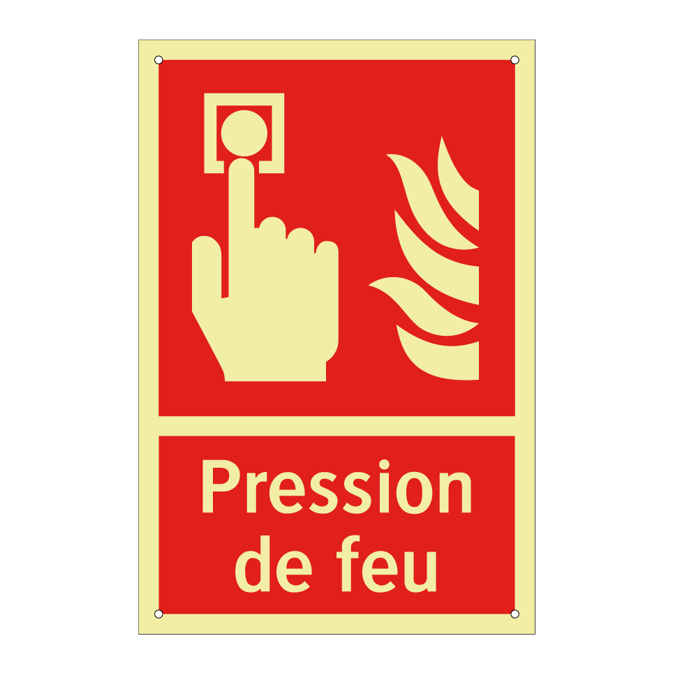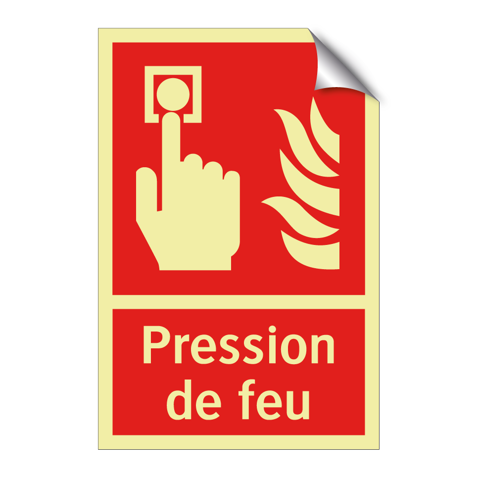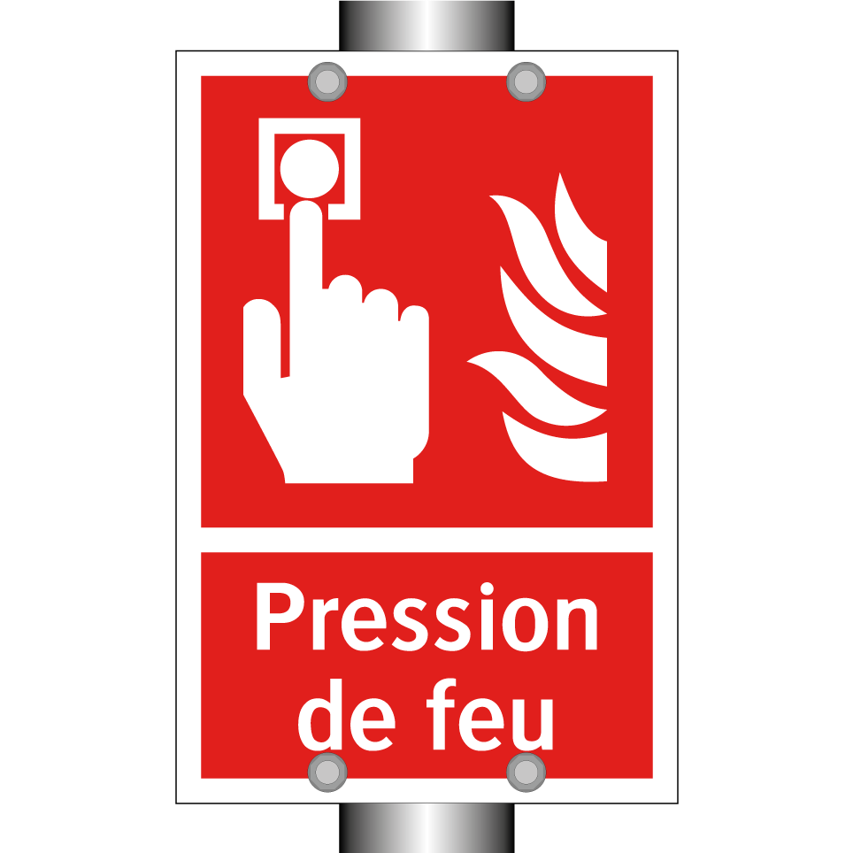 Panneau incendie avec le texte Pression de feu et une symbolique claire