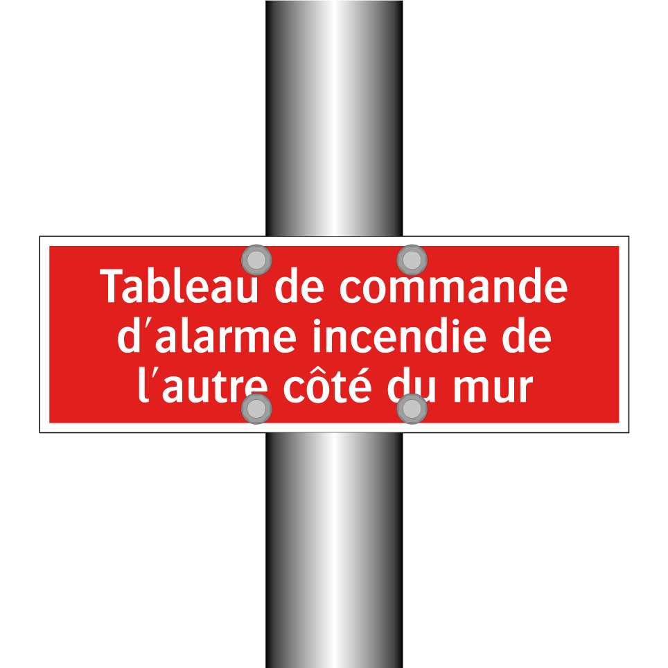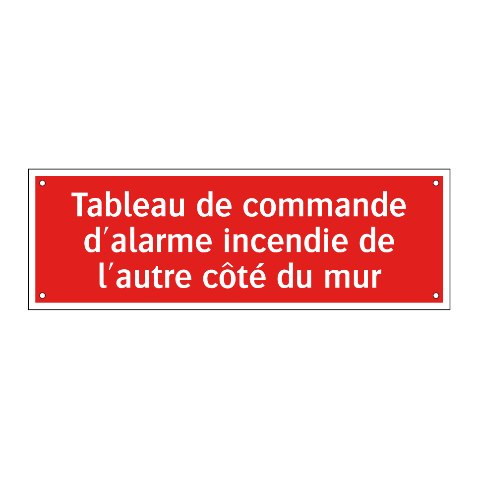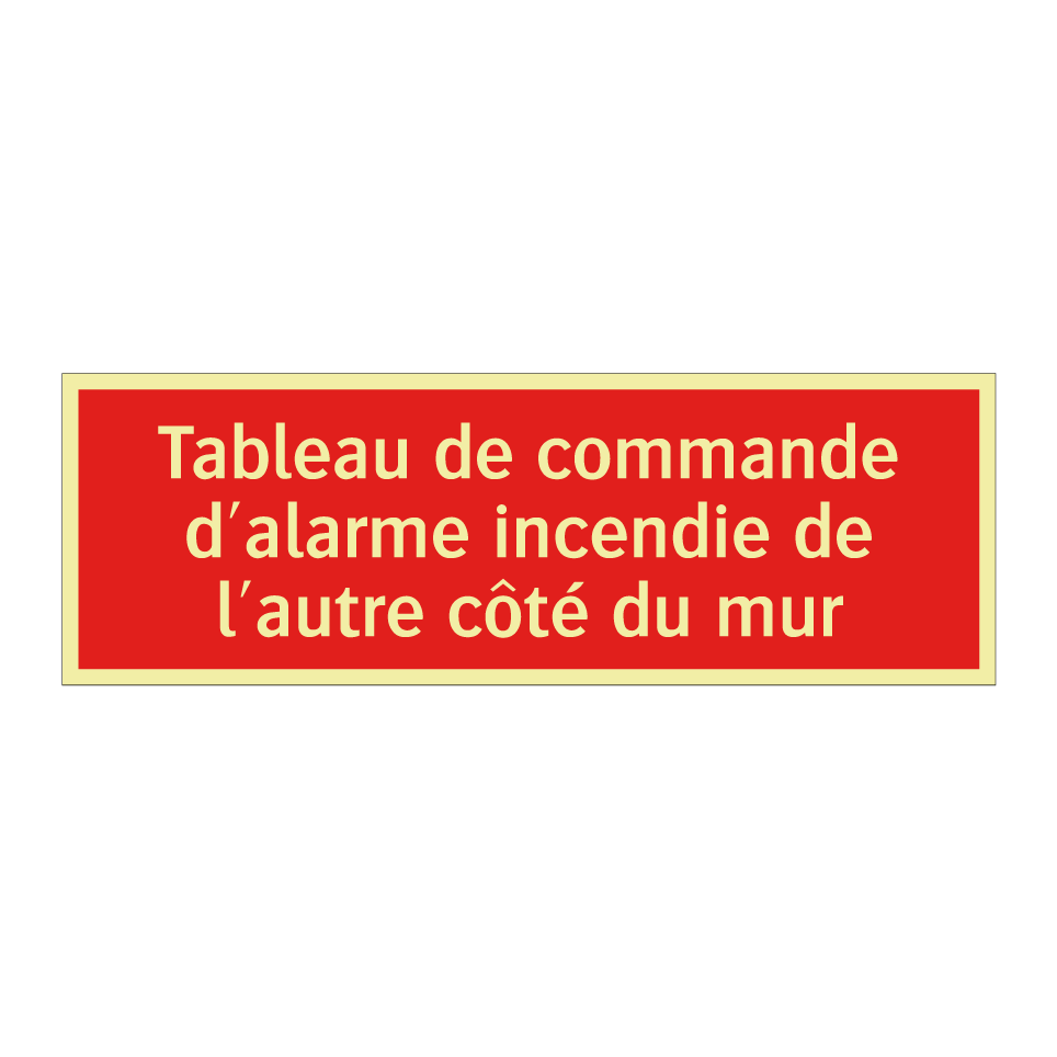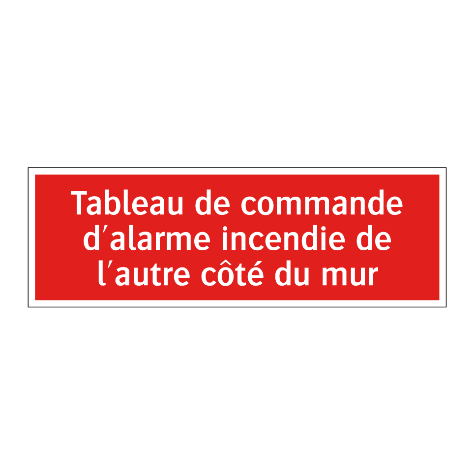 Panneau de signalisation incendie avec le texte Tableau de commande d'alarme incendie de l'autre côté du mur