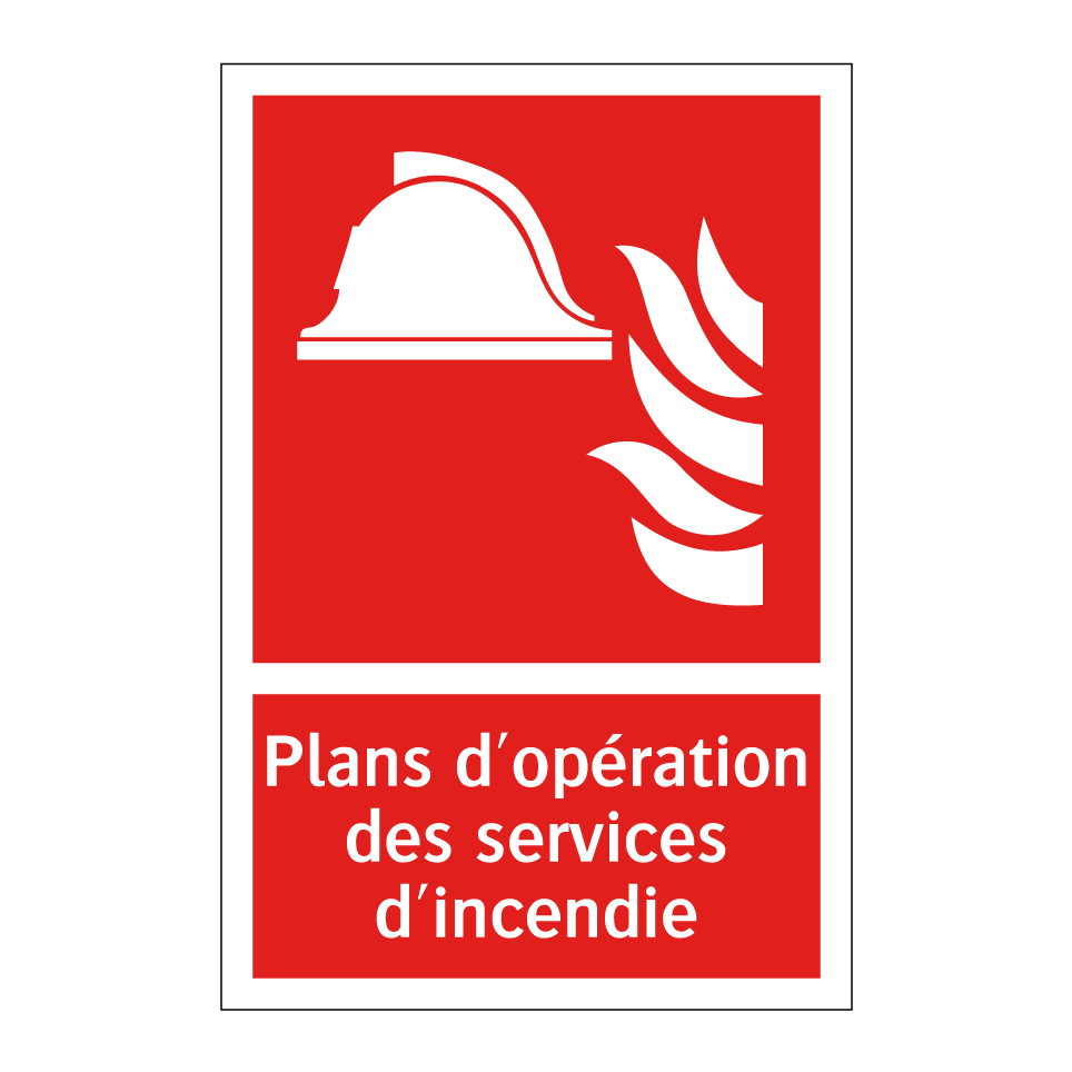 Panneau incendie avec le texte Plans d'opération des services d'incendie et une symbolique claire