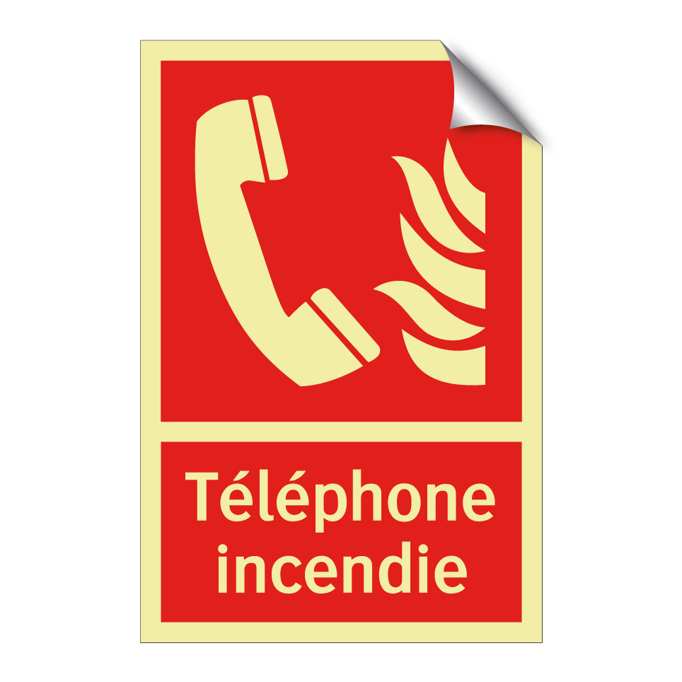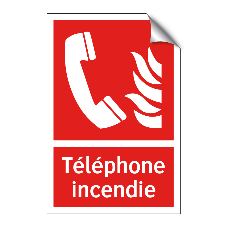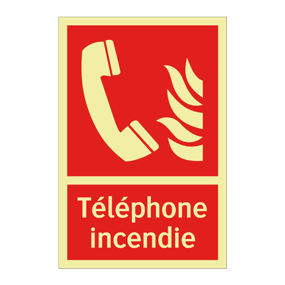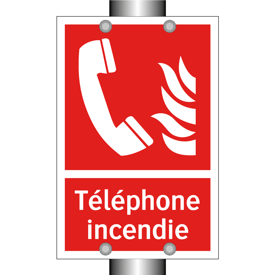 Panneau incendie avec le texte Téléphone incendie et une symbolique claire