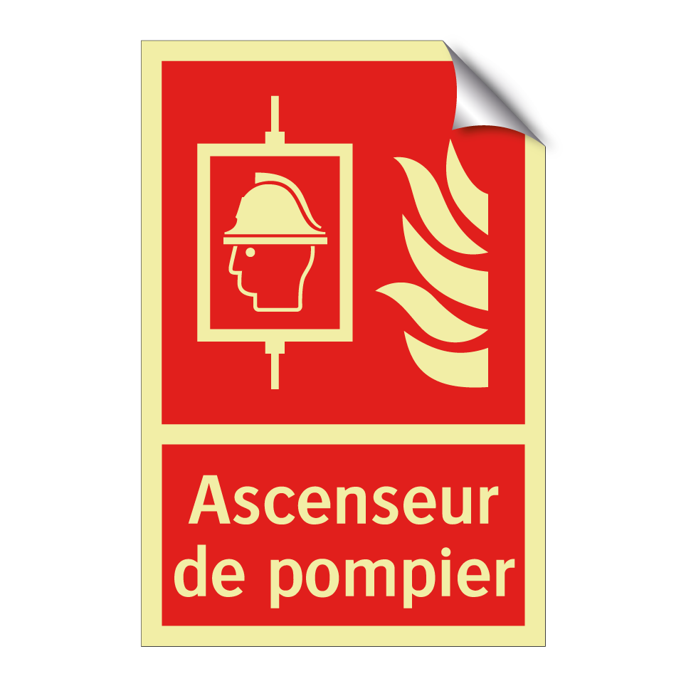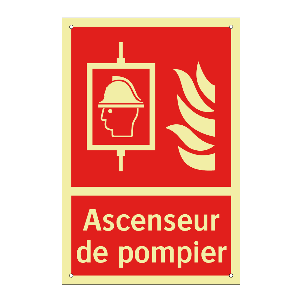 Panneau incendie avec le texte Ascenseur de pompier et une symbolique claire