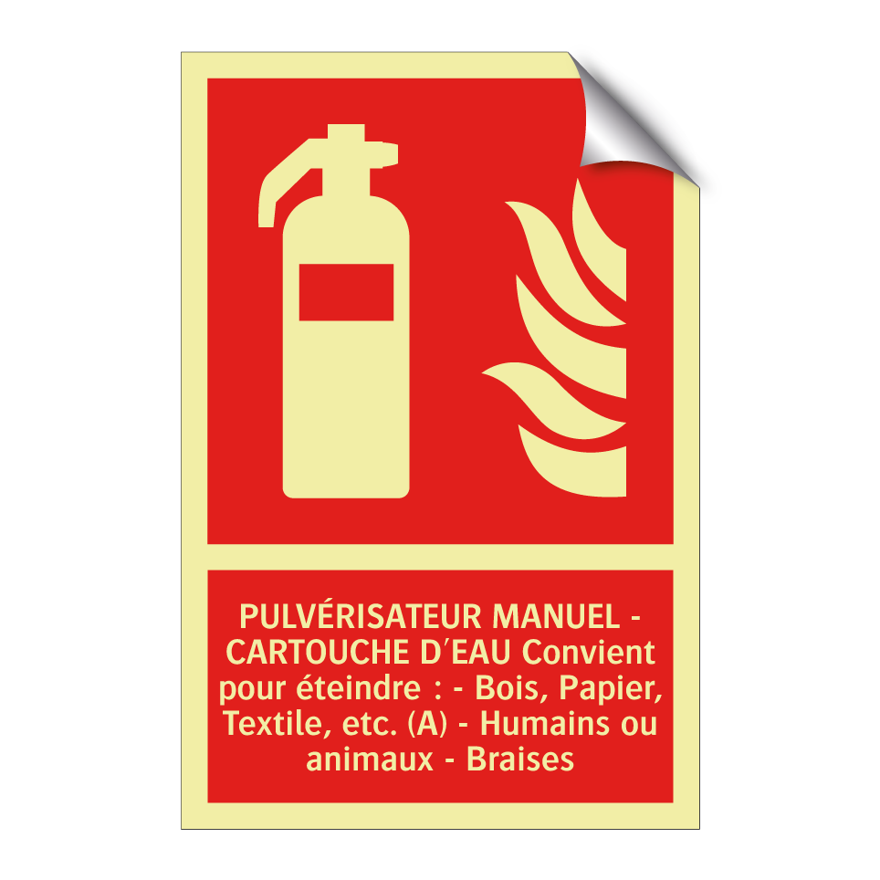 Cette pancarte de sécurité incendie est idéale pour être placée dans des environnements où la prévention des incendies est cruciale. Elle est conçue pour indiquer l'emplacement d'un pulvérisateur manuel à cartouche d'eau, efficace pour éteindre des feux de classe A, tels que ceux impliquant du bois, du papier et des textiles. Elle est également adaptée pour des situations impliquant des humains ou des animaux, ainsi que pour des braises. Installez-la dans des lieux publics, des bureaux, des ateliers ou des espaces industriels pour assurer une visibilité optimale et une intervention rapide en cas d'urgence. Sa couleur rouge vif et son texte blanc garantissent une reconnaissance immédiate.