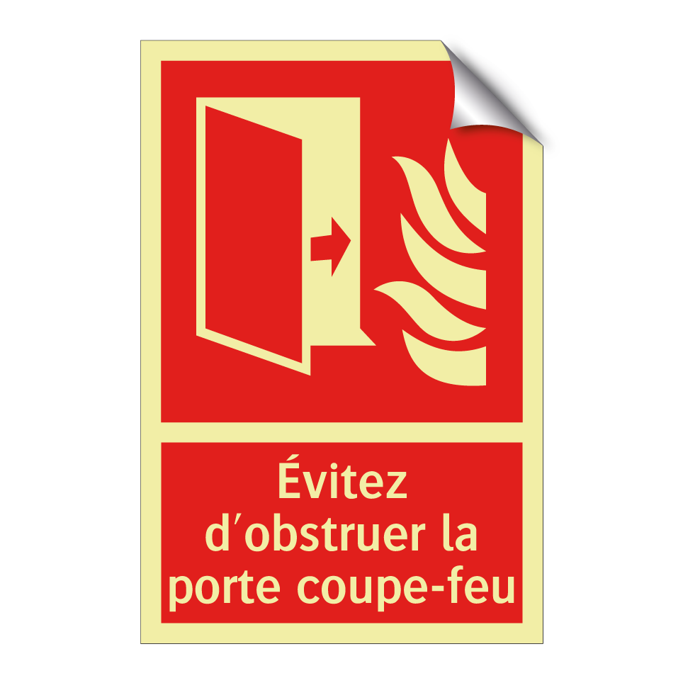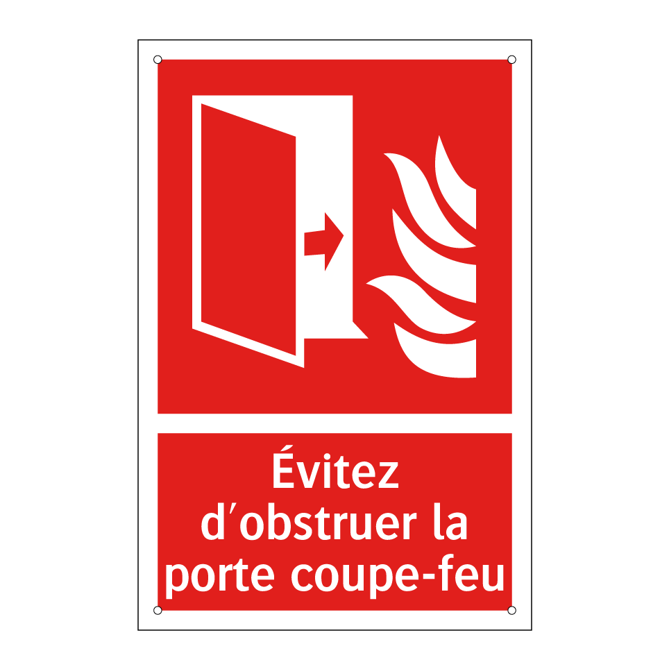 Panneau incendie avec le texte Évitez d'obstruer la porte coupe-feu et une symbolique claire