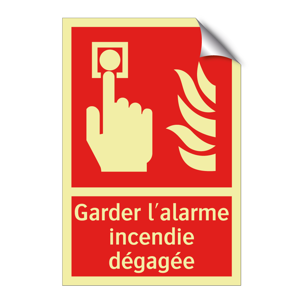 Panneau incendie avec le texte Garder l'alarme incendie dégagée et une symbolique claire