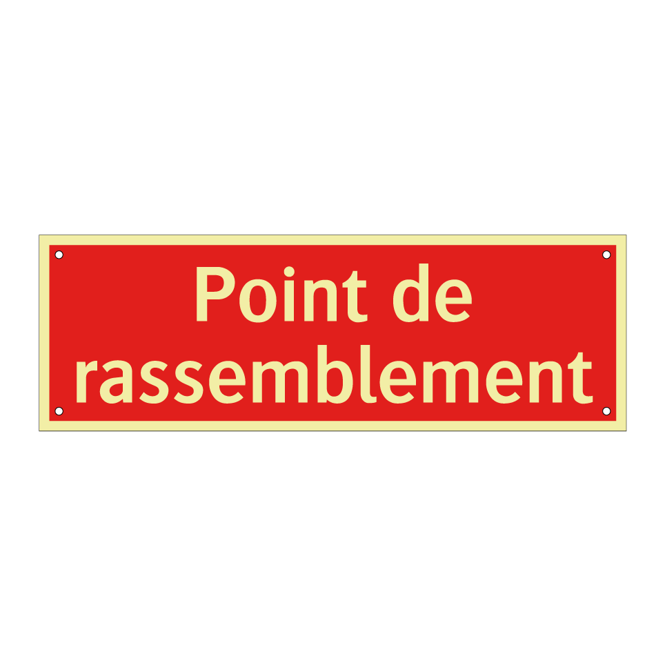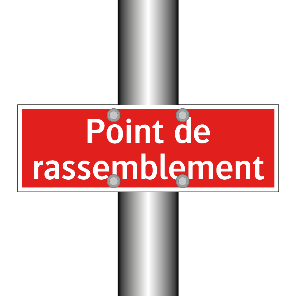 Panneau de signalisation incendie avec le texte Point de rassemblement