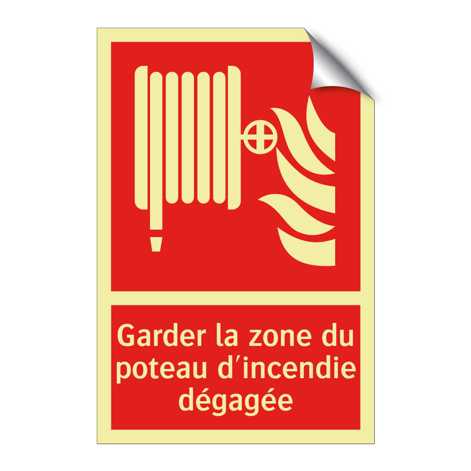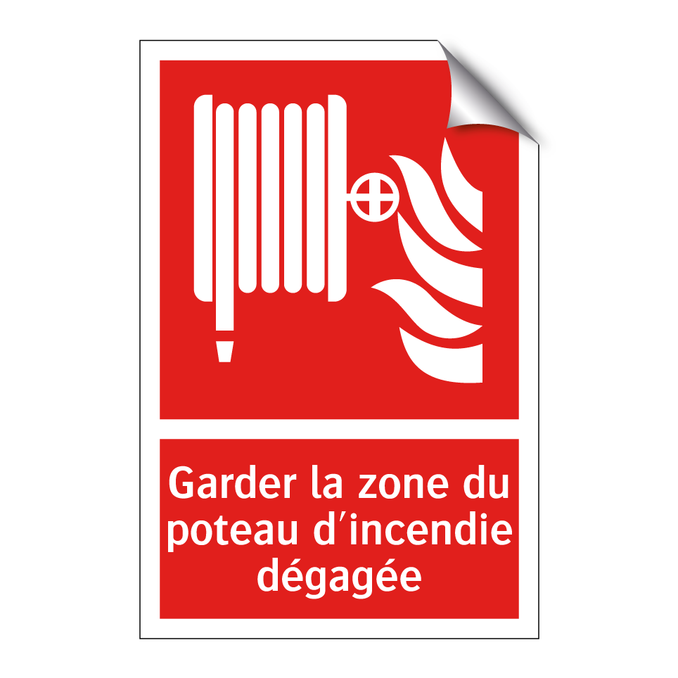 Panneau incendie avec le texte Garder la zone du poteau d'incendie dégagée et une symbolique claire
