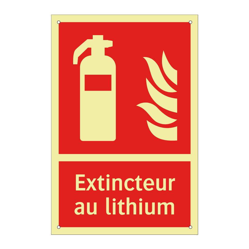 Panneau incendie avec le texte Extincteur au lithium et une symbolique claire