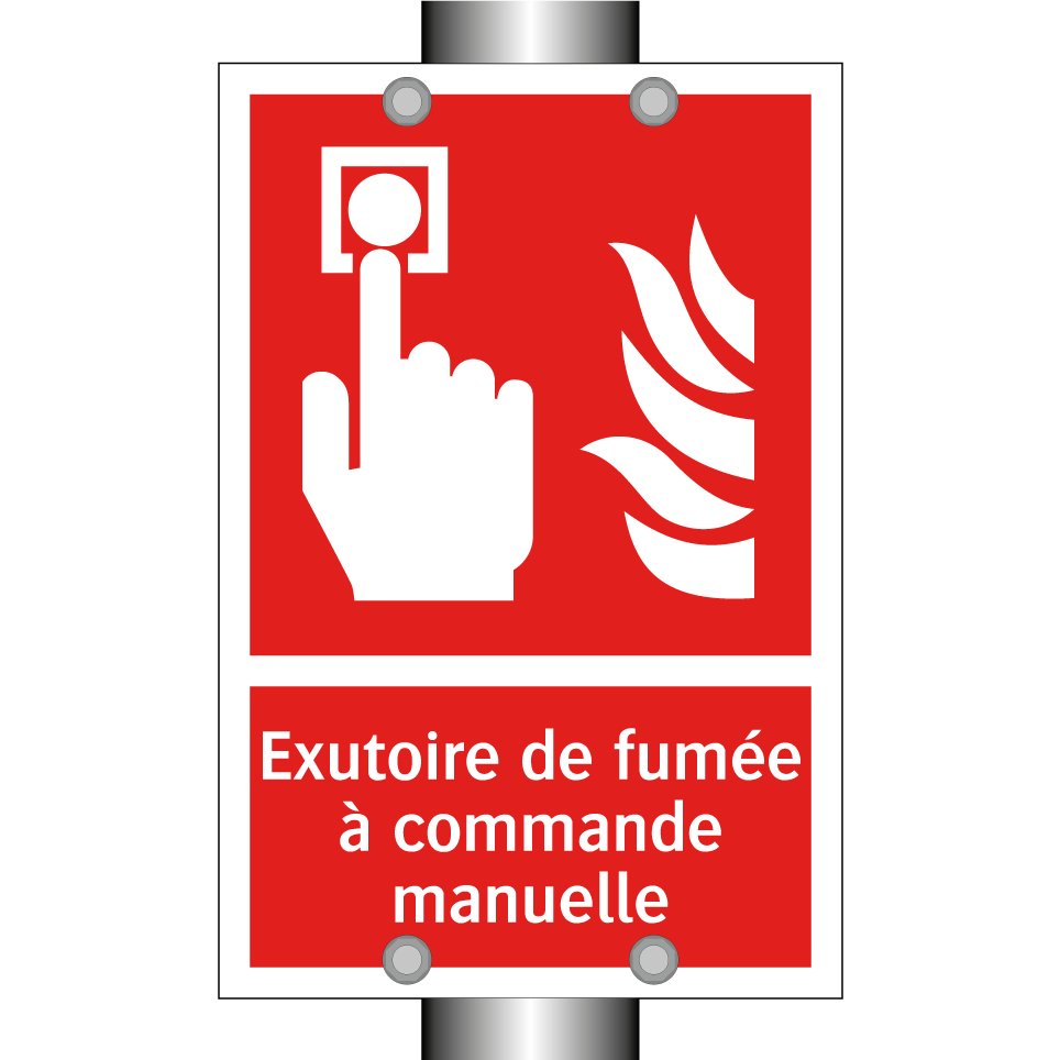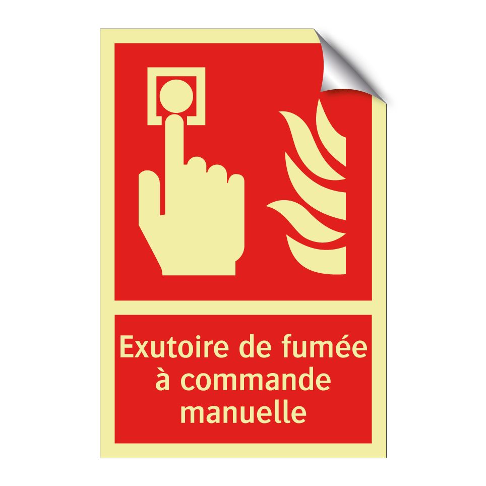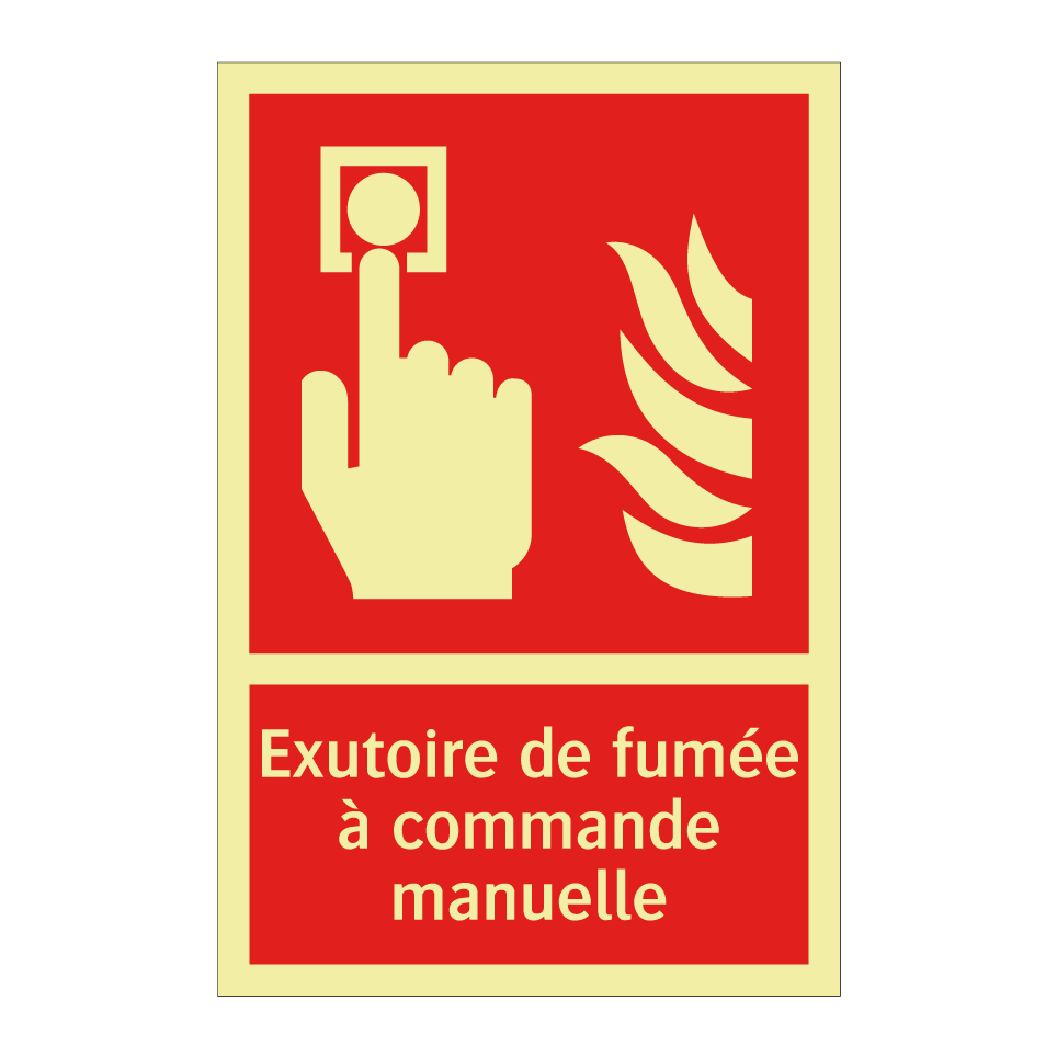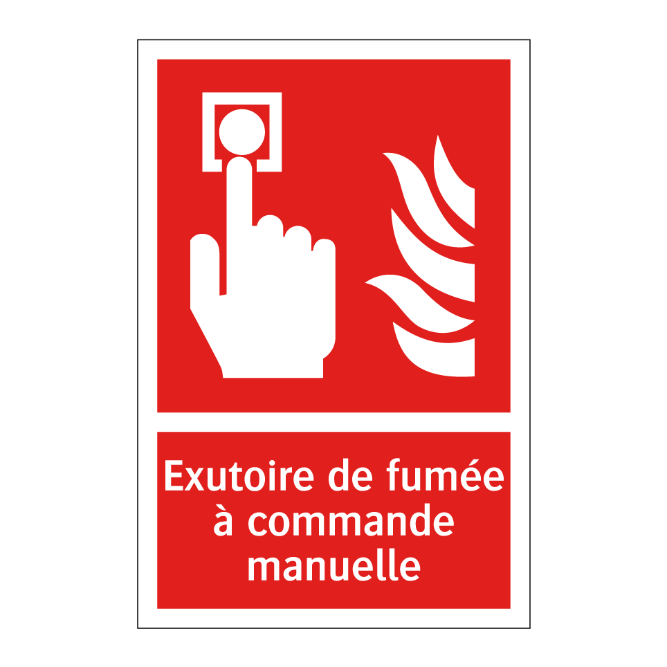 Panneau incendie avec le texte Exutoire de fumée à commande manuelle et une symbolique claire