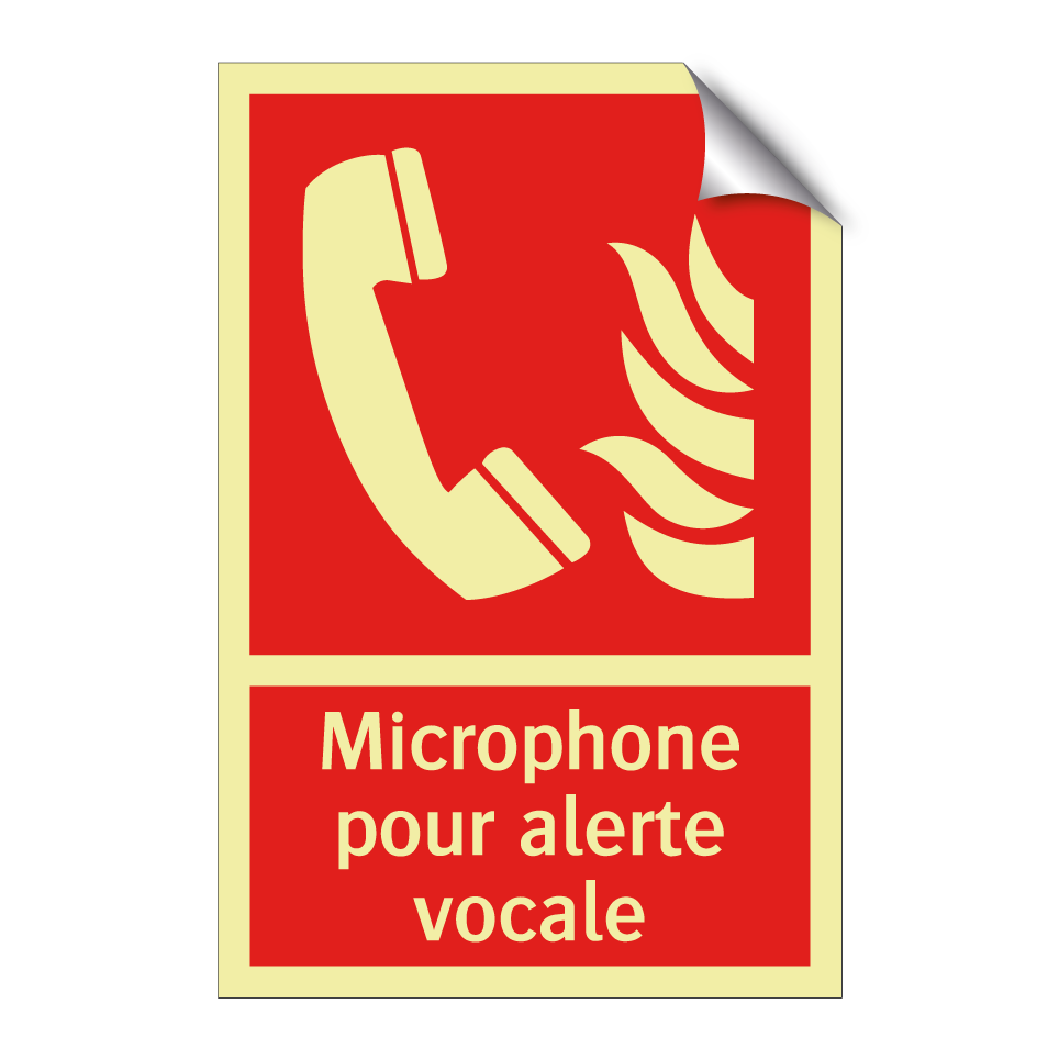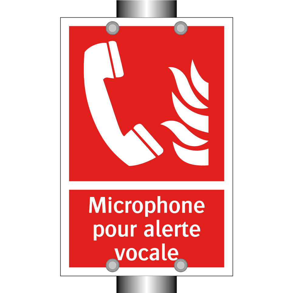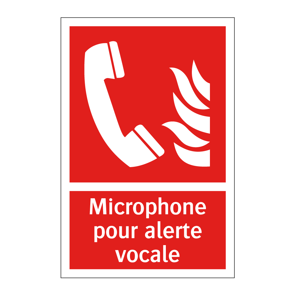 Panneau incendie avec le texte Microphone pour alerte vocale et une symbolique claire