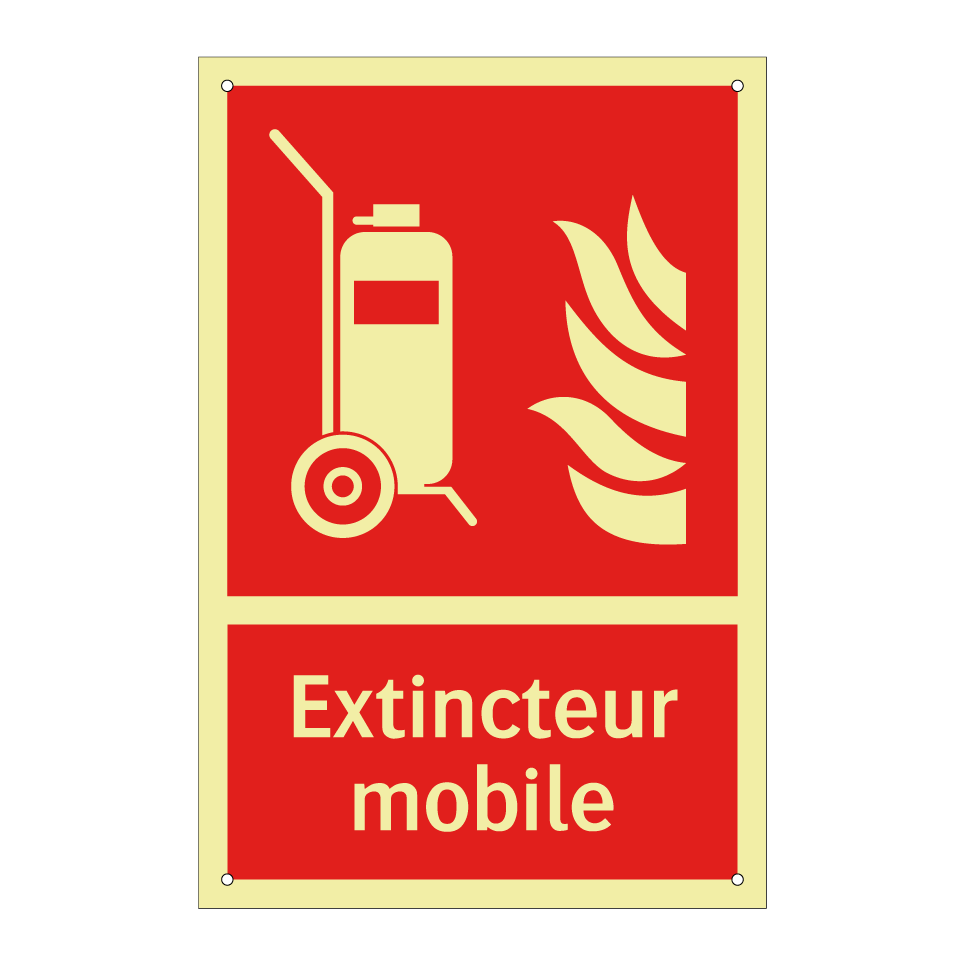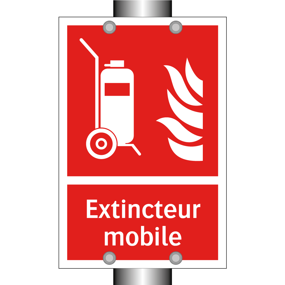 Panneau incendie avec le texte Extincteur mobile et une symbolique claire
