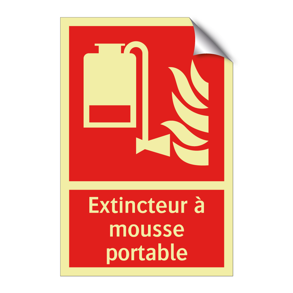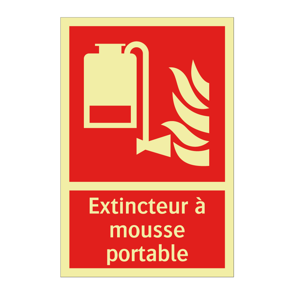 Panneau incendie avec le texte Extincteur à mousse portable et une symbolique claire