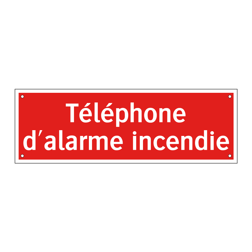 Panneau de signalisation incendie avec le texte Téléphone d'alarme incendie