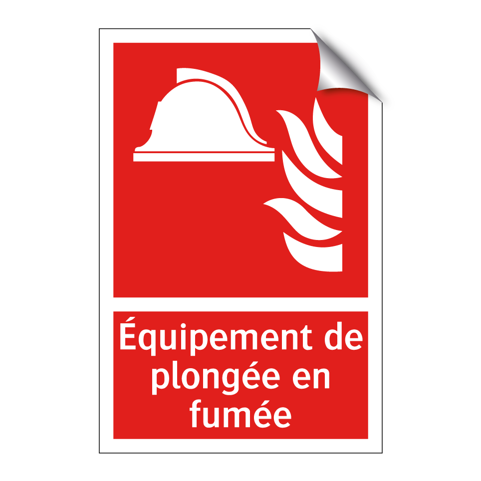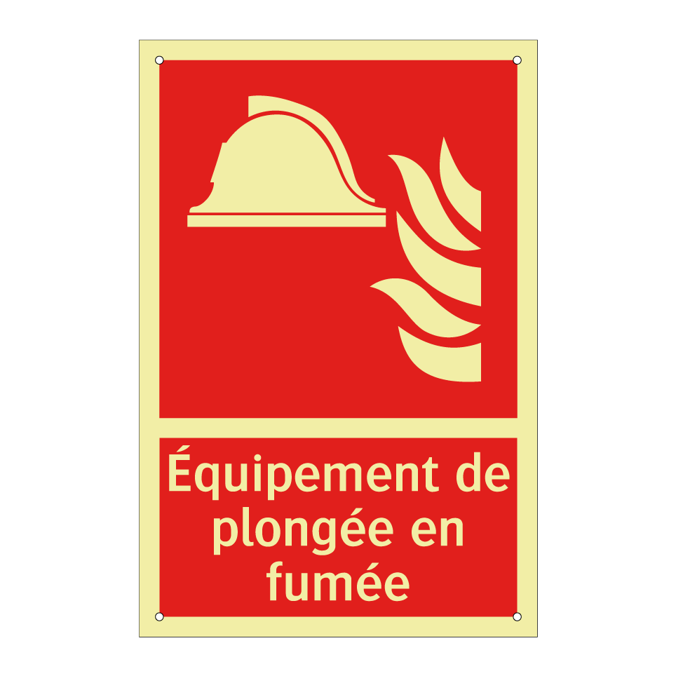 Panneau incendie avec le texte Équipement de plongée en fumée et une symbolique claire