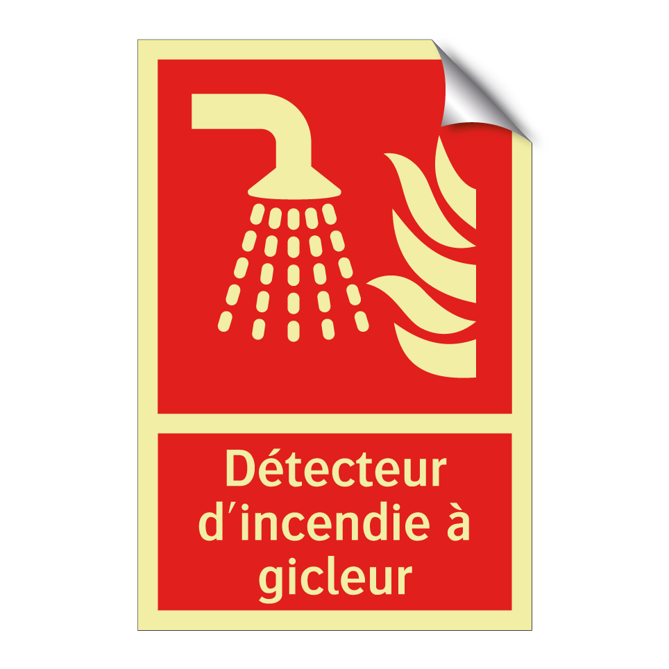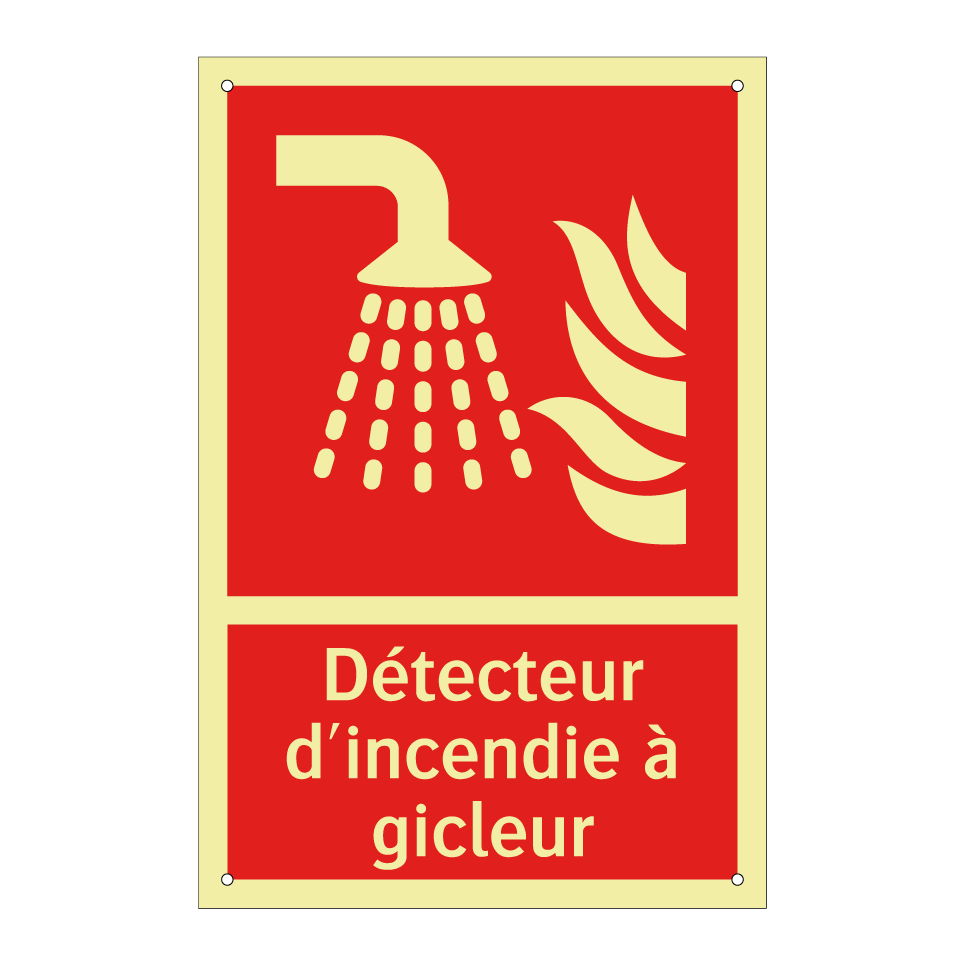 Panneau incendie avec le texte Détecteur d'incendie à gicleur et une symbolique claire