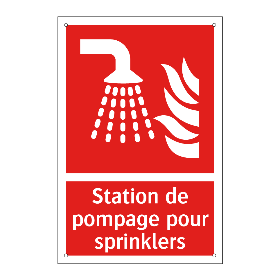Panneau incendie avec le texte Station de pompage pour sprinklers et une symbolique claire
