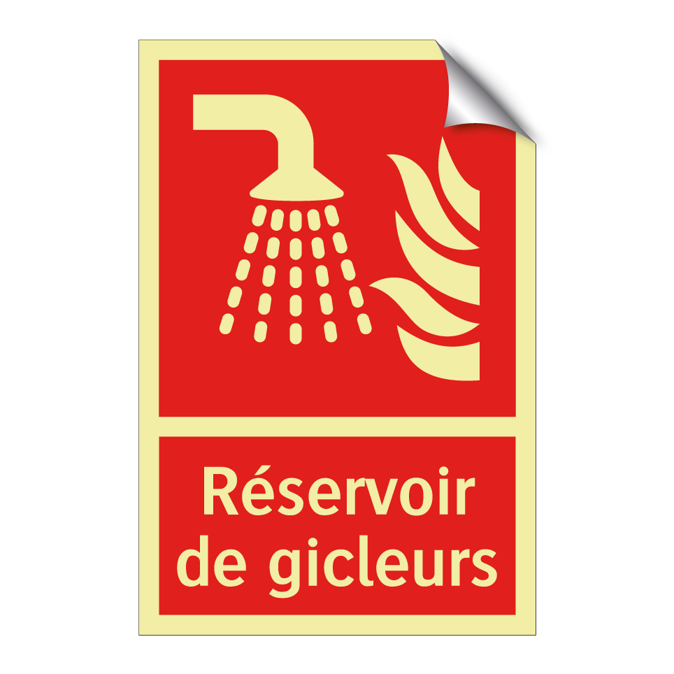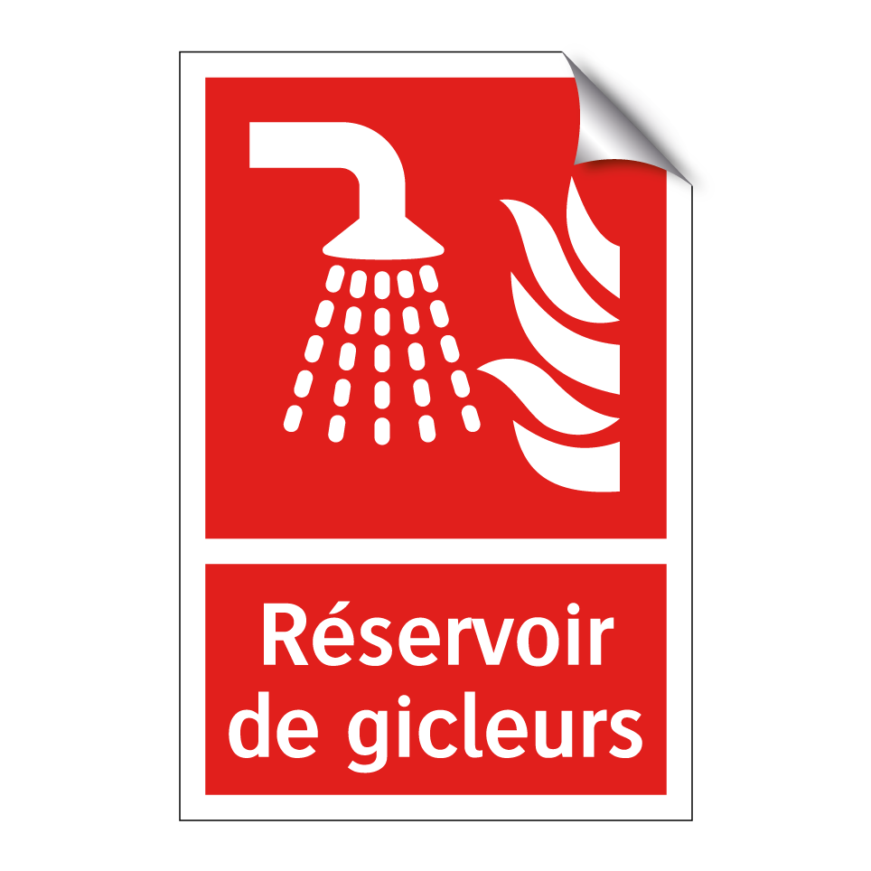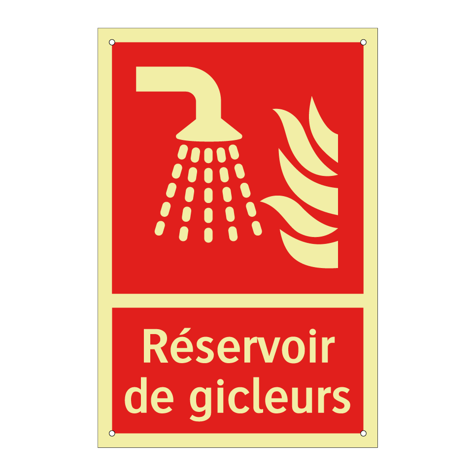 Panneau incendie avec le texte Réservoir de gicleurs et une symbolique claire