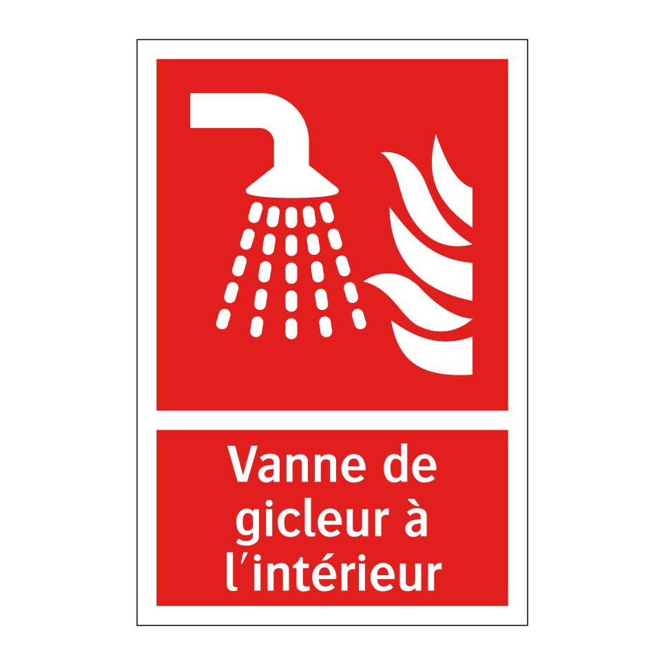 Panneau incendie avec le texte Vanne de gicleur à l'intérieur et une symbolique claire