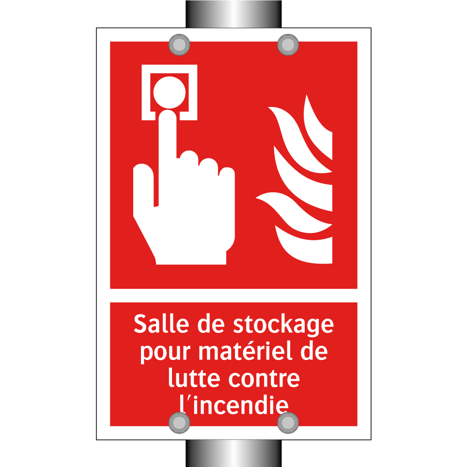 Panneau incendie avec le texte Salle de stockage pour matériel de lutte contre l'incendie et une symbolique claire