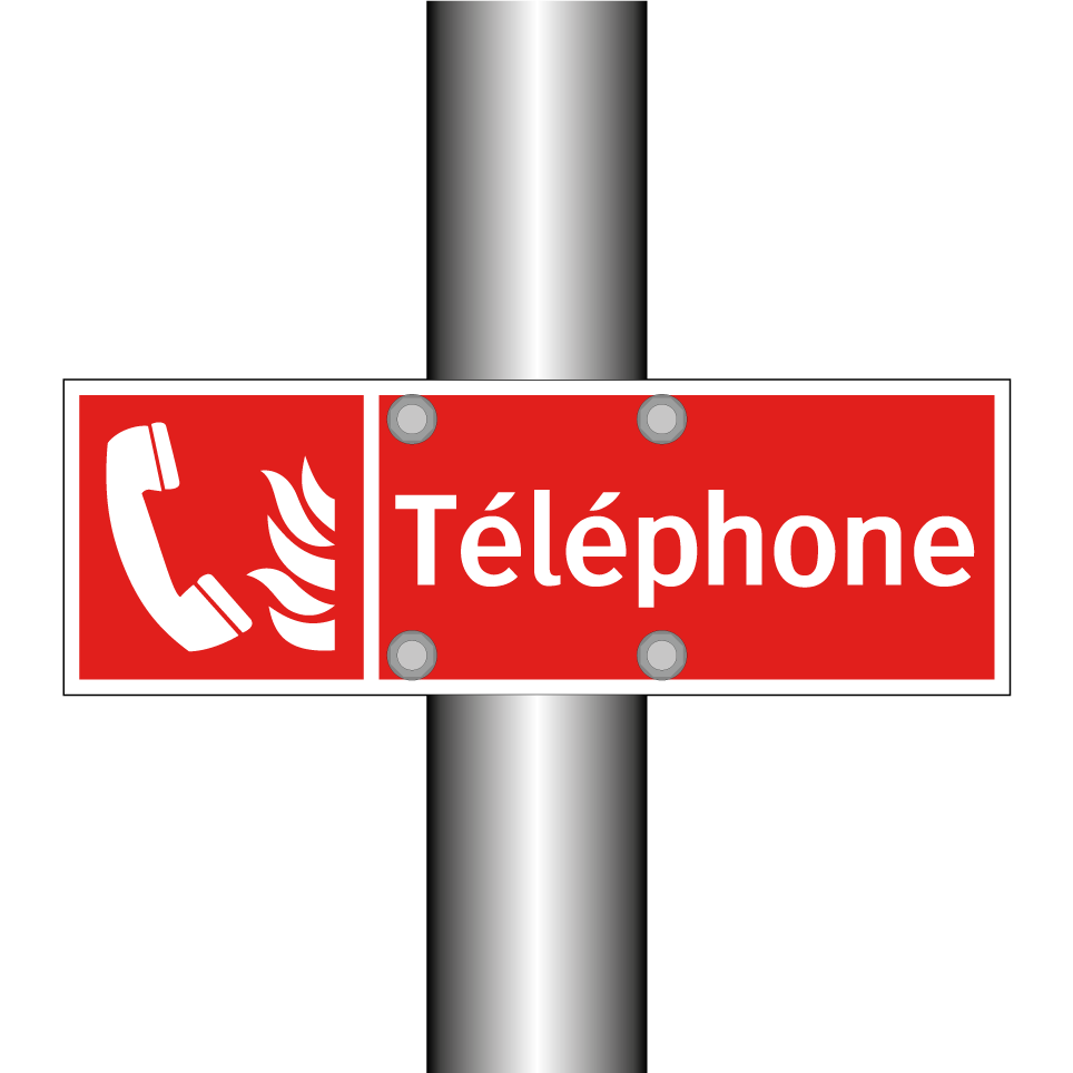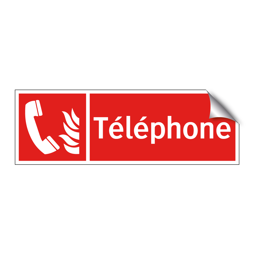 Panneau incendie avec le texte Téléphone et une symbolique claire