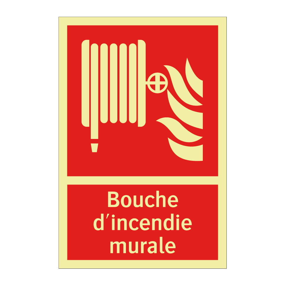Panneau incendie avec le texte Bouche d'incendie murale et une symbolique claire