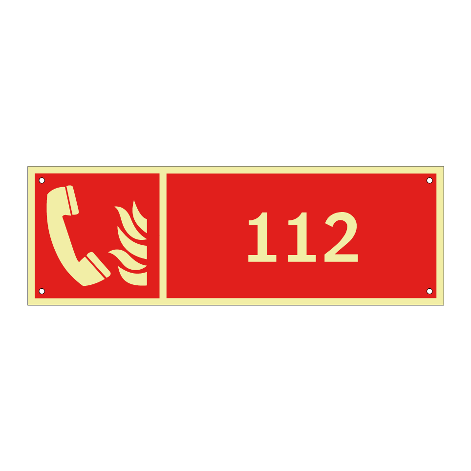 Panneau incendie avec le texte 112 et une symbolique claire