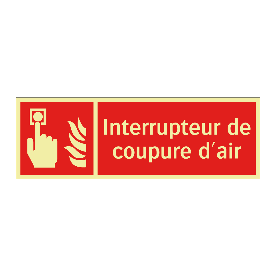 Panneau incendie avec le texte Interrupteur de coupure d'air et une symbolique claire