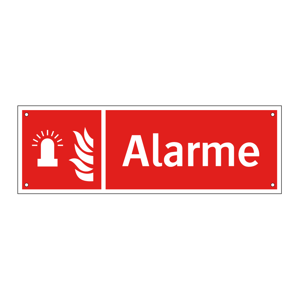 Panneau incendie avec le texte Alarme et une symbolique claire