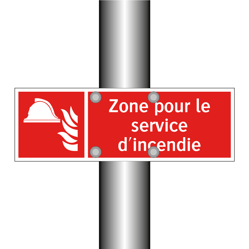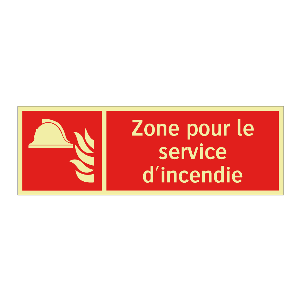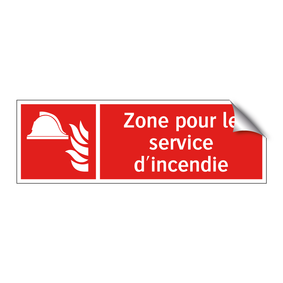Panneau incendie avec le texte Zone pour le service d'incendie et une symbolique claire