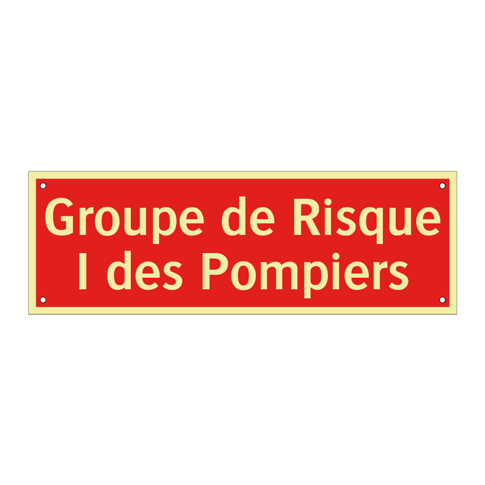 Panneau de signalisation incendie avec le texte Groupe de Risque I des Pompiers