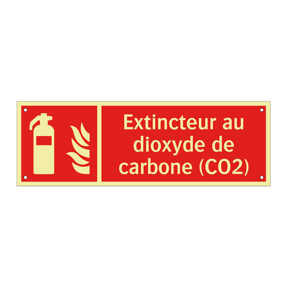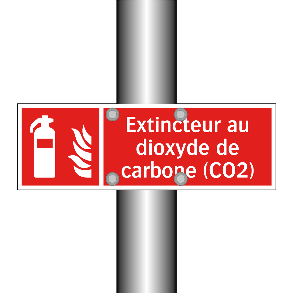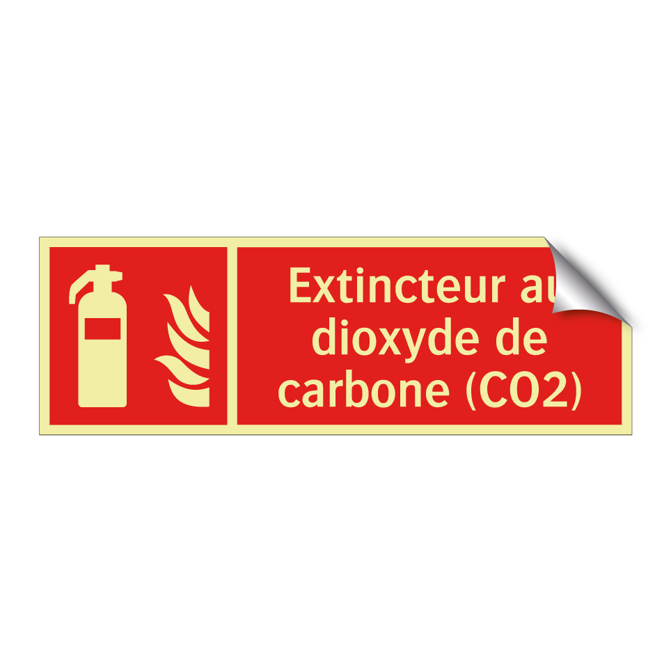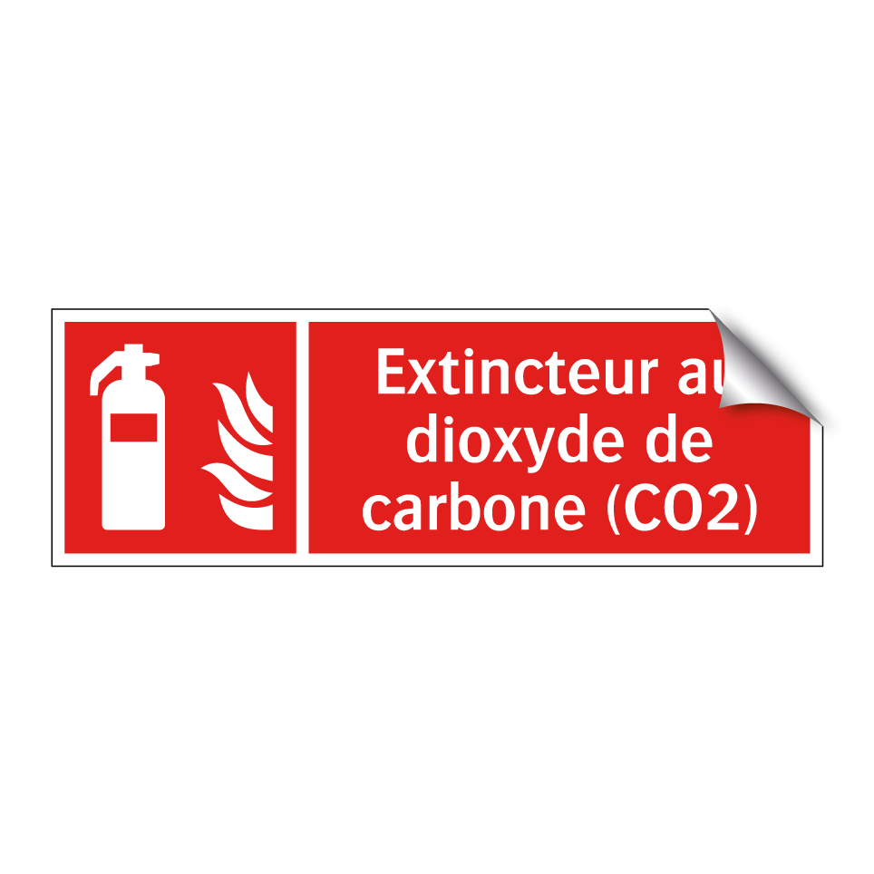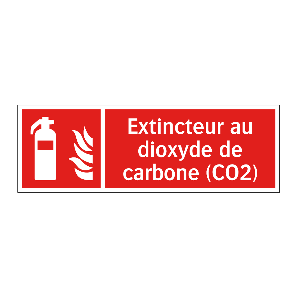 Panneau incendie avec le texte Extincteur au dioxyde de carbone (CO2) et une symbolique claire