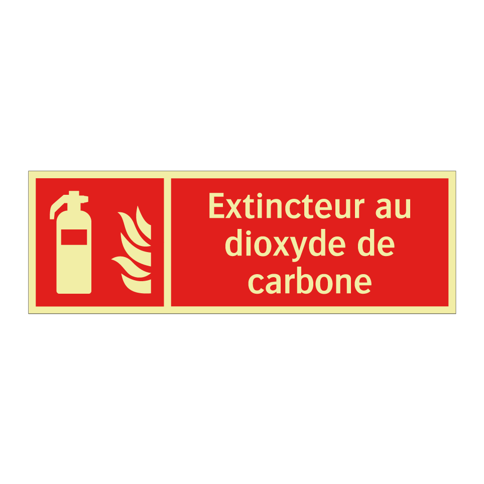 Panneau incendie avec le texte Extincteur au dioxyde de carbone et une symbolique claire