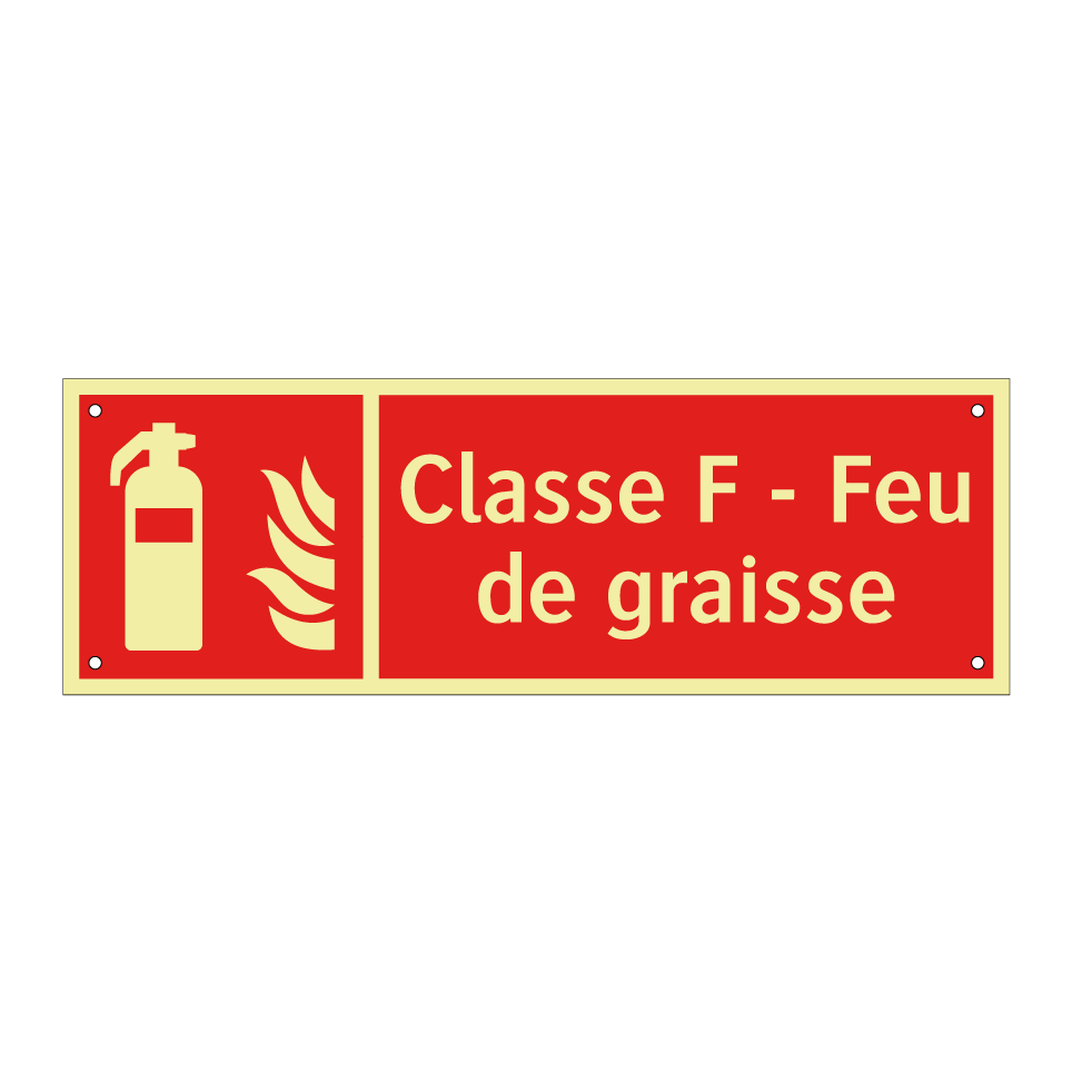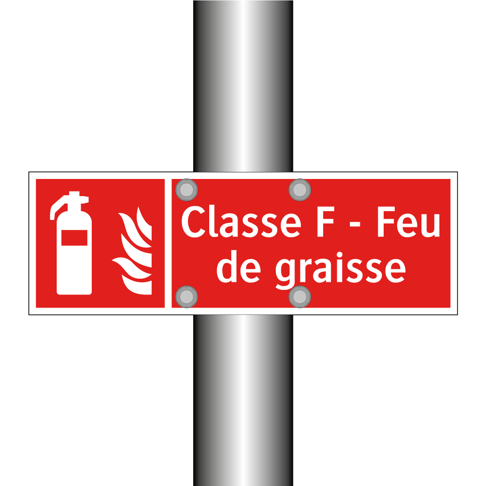 Panneau incendie avec le texte Classe F - Feu de graisse et une symbolique claire
